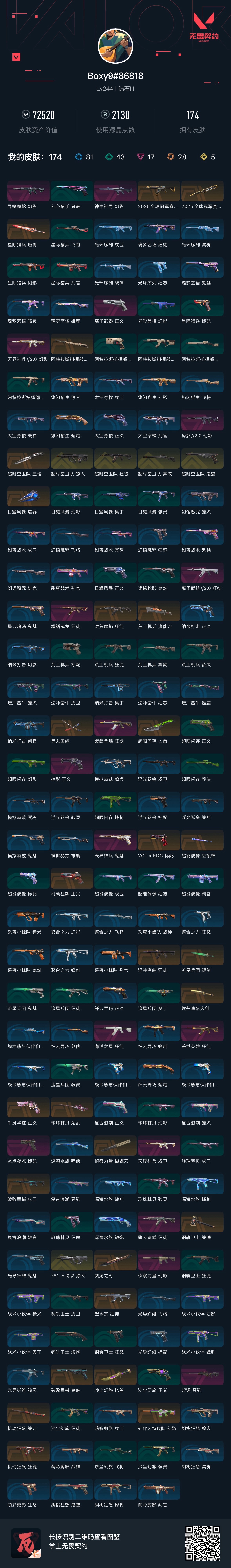 • 皮肤资产价值: 72520