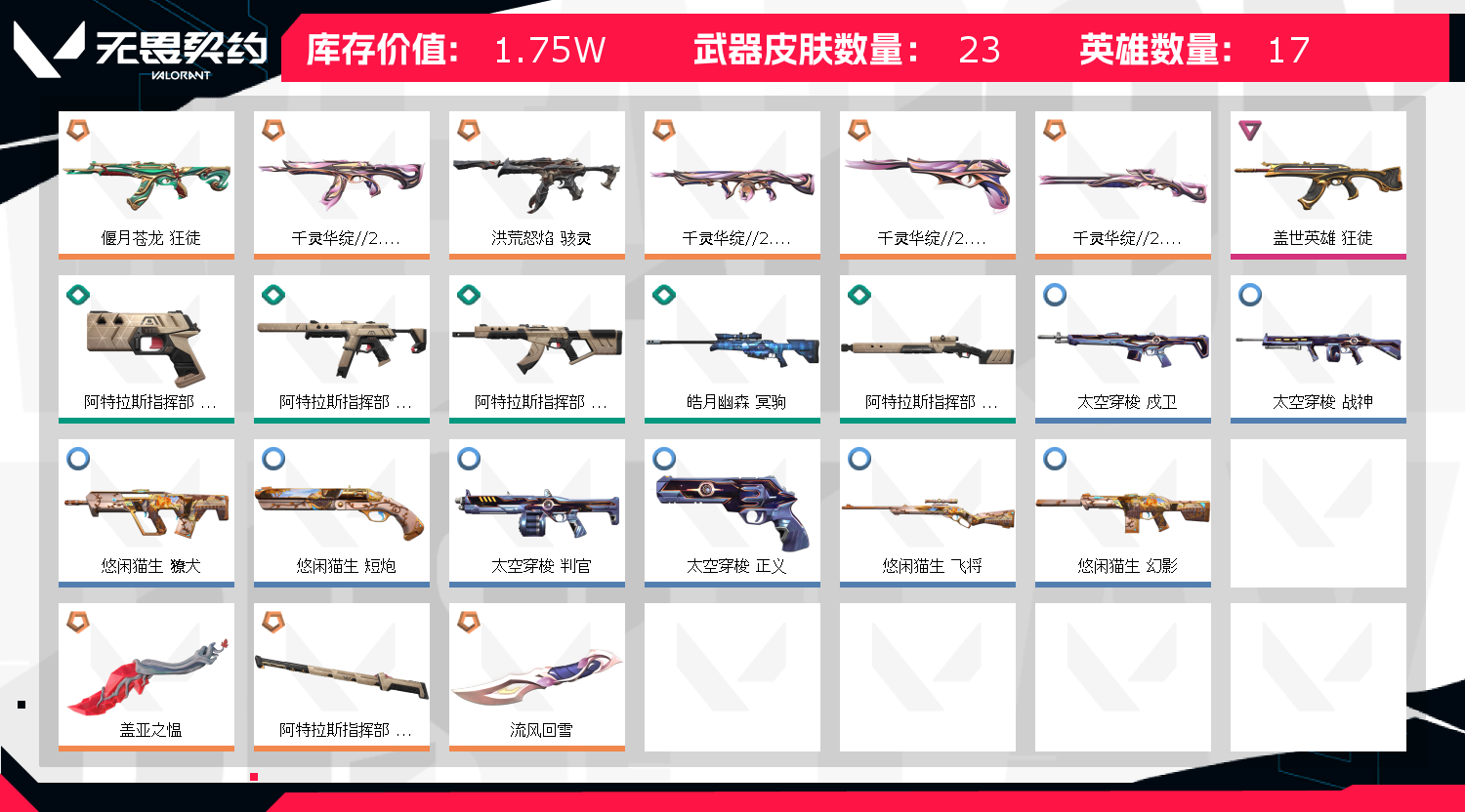 首页 > 租号大厅 > 无畏契约-wegame > wegame/wegame > 允许 英雄17 武器皮肤数量23