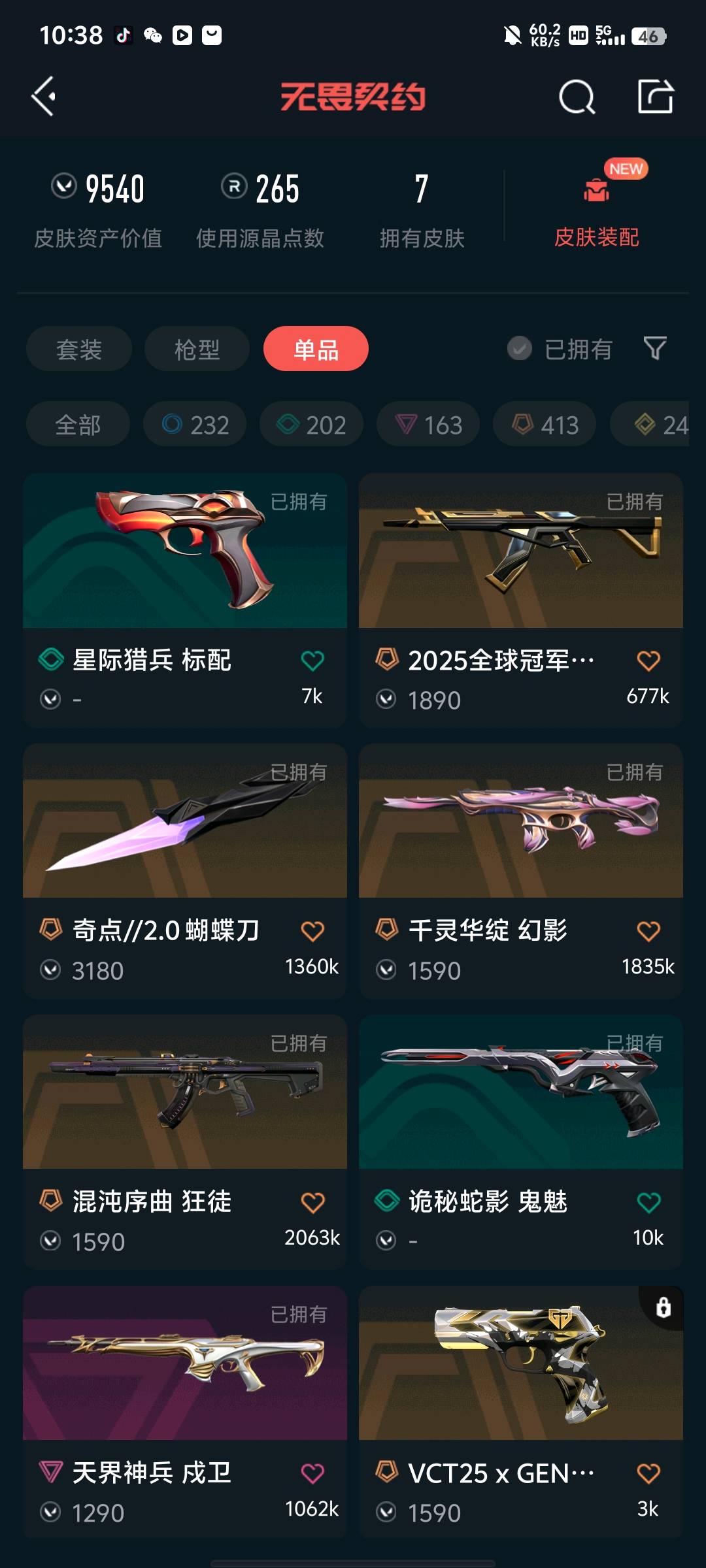 • 皮肤资产价值: 9540