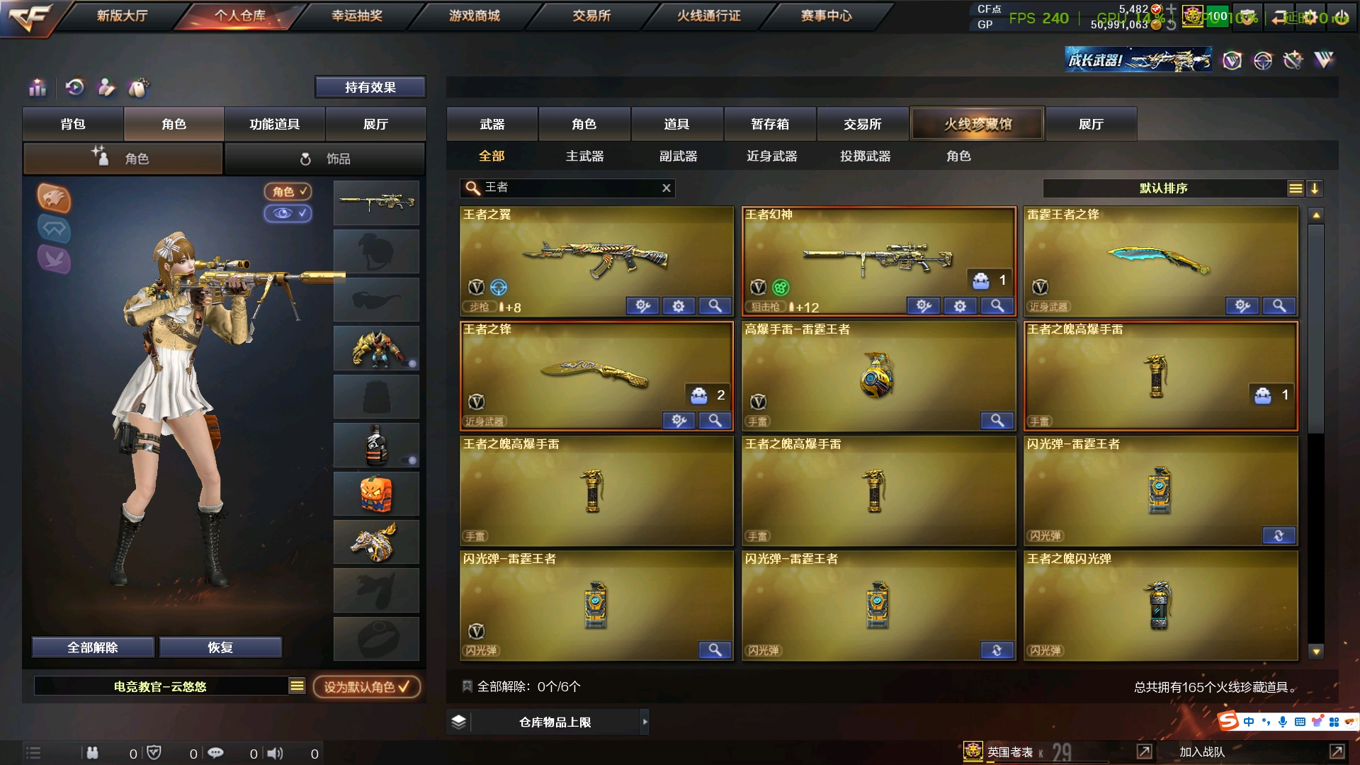 看图片;USP-雷暴,电竞教官-云悠悠,RPK-盘龙,QBZ03-金色蔷薇,M200-幻神,Scar Light-白虎,