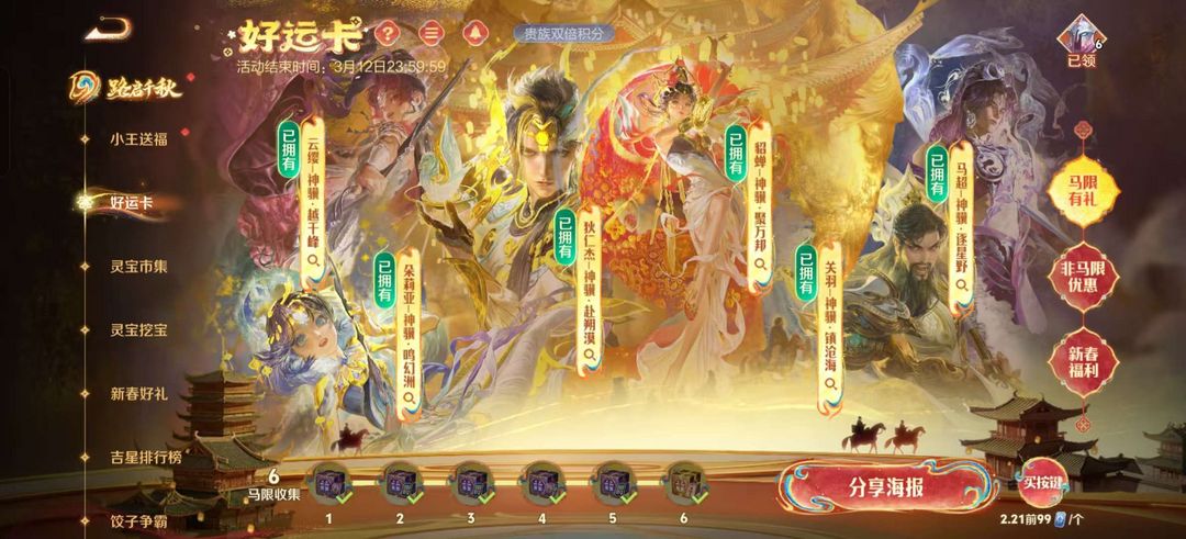 v10、537皮6水4无双、安琪拉-颠倒童话·魔镜、朵莉亚-神骥、遇见神鼓、齐天大圣、白虎志、韩信荣耀典藏、73传说、时之魔女、瑶无双、青丘、九尾、神器明辉仪