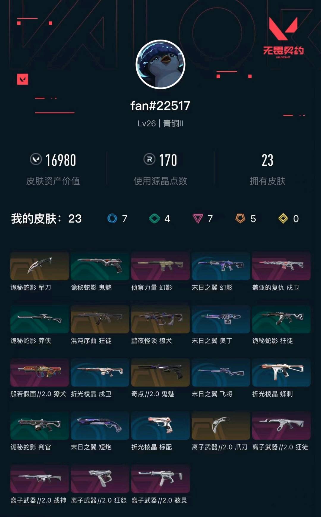 • 皮肤资产价值: 16980