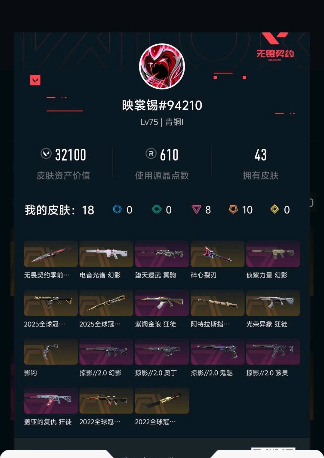 • 游戏区服:无畏契约-wegame / wegame / wegame