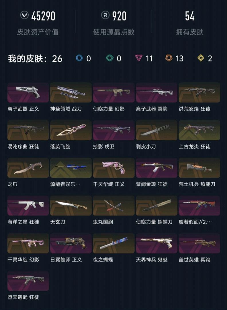 • 皮肤资产价值: 45290
