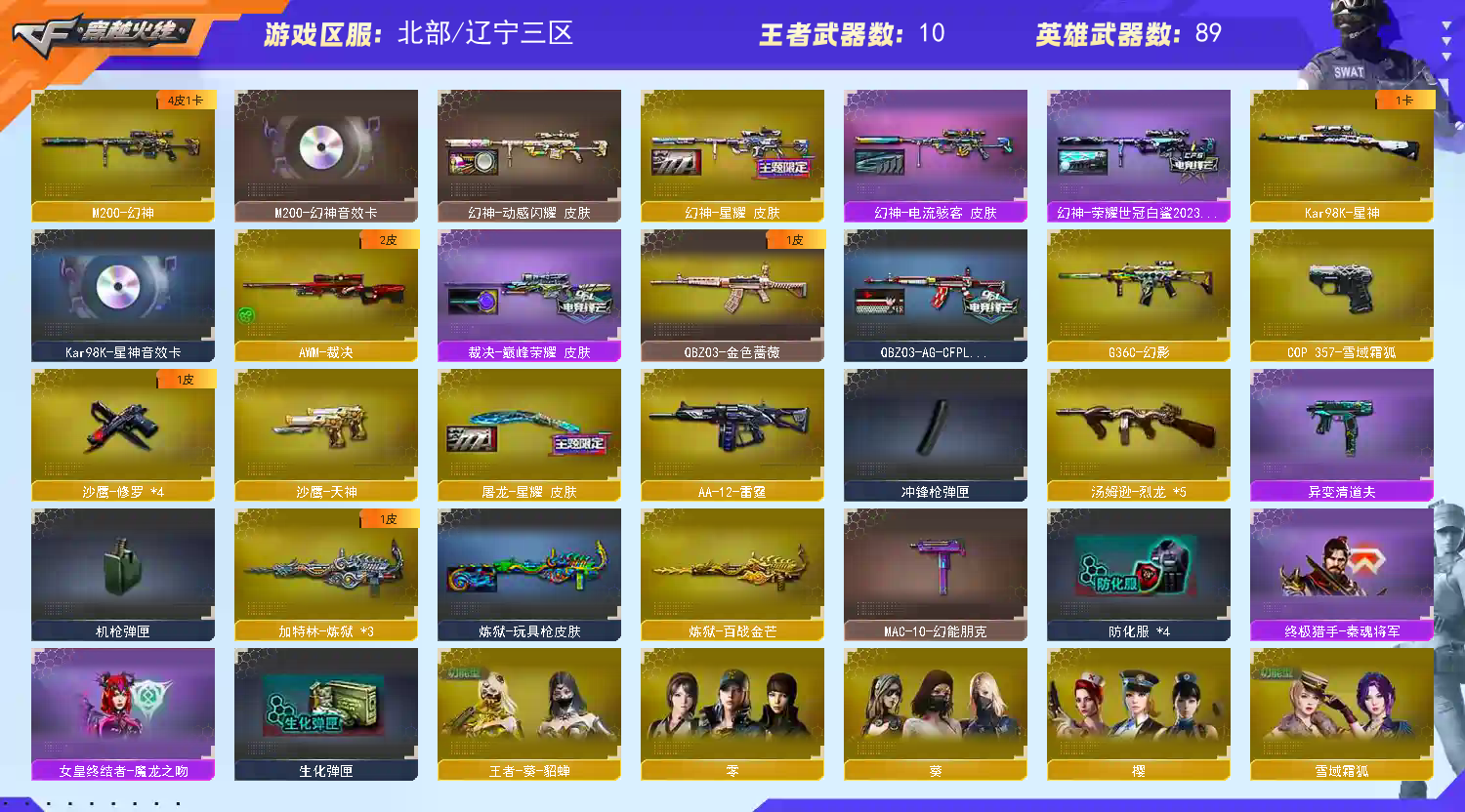 幻神-幻神动感闪耀-幻神白鲨2023-幻神星耀-幻神电流骇客-幻神音效卡-星神-星神音效卡-王者风神-幻影-qbz金色蔷薇-白虎电玩蓝兔-毁灭-5烈龙-炼狱-屠龙-龙啸-擎天-麒麟刺-毁灭音效卡-黑骑士音效卡-屠龙星耀-裁决巅峰荣耀-龙啸巅峰荣耀-qbzAG19冠军-雷神白鲨 请看截图 喜欢请点收藏 方便下次租 可以当成自己号玩【感谢老板租此号】优质账号 如果有个别装备到期 影响不大的情况下请不要维权,如遇到账号密码错误 顶号 冻结 请直接维权即可, 科技大佬麻烦看了请绕道,出zu不易,给你跪下了!;