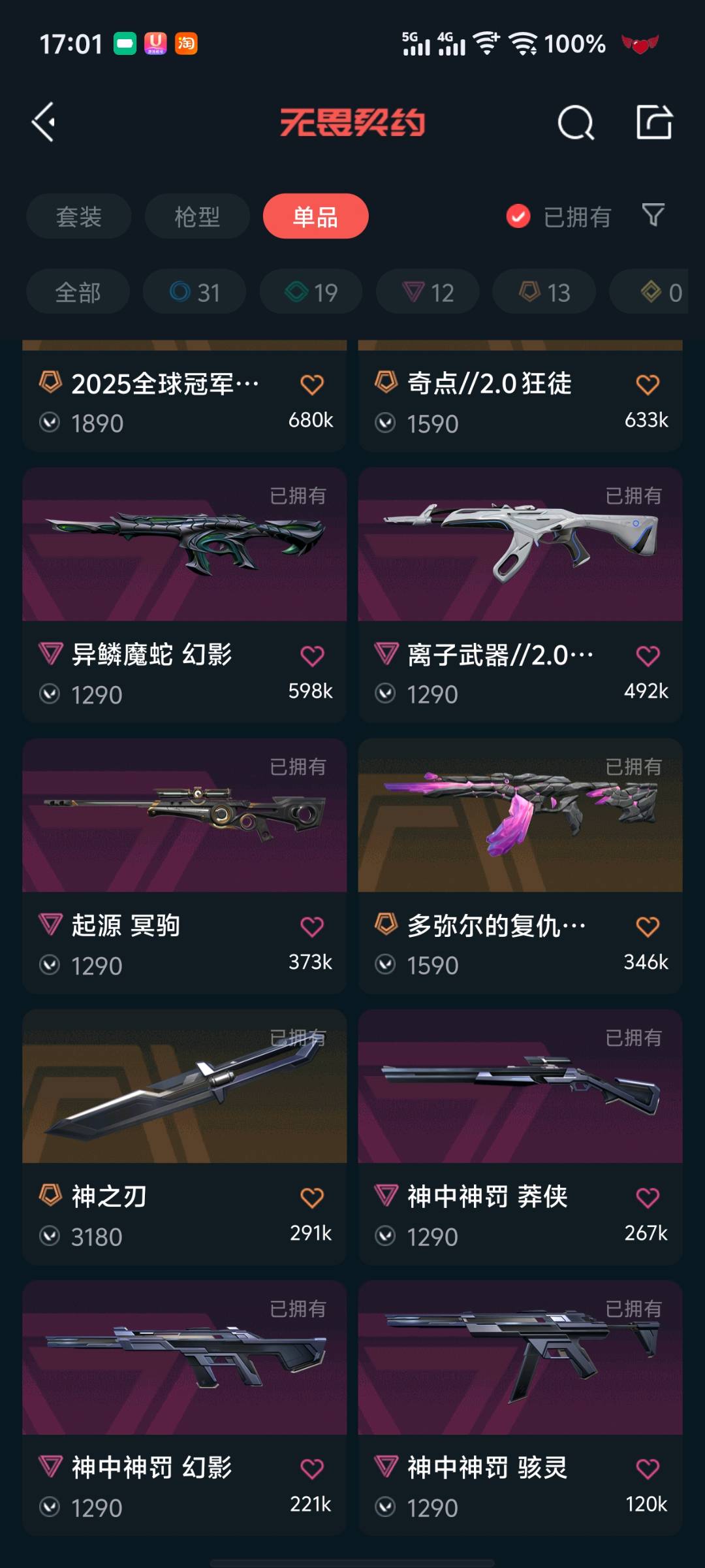 全角色低强度号可排位炸鱼,狂徒皮肤盖亚紫金离子掠影25冠军等侦查莲花魔蛇等有紫金爪刀,神之刃等