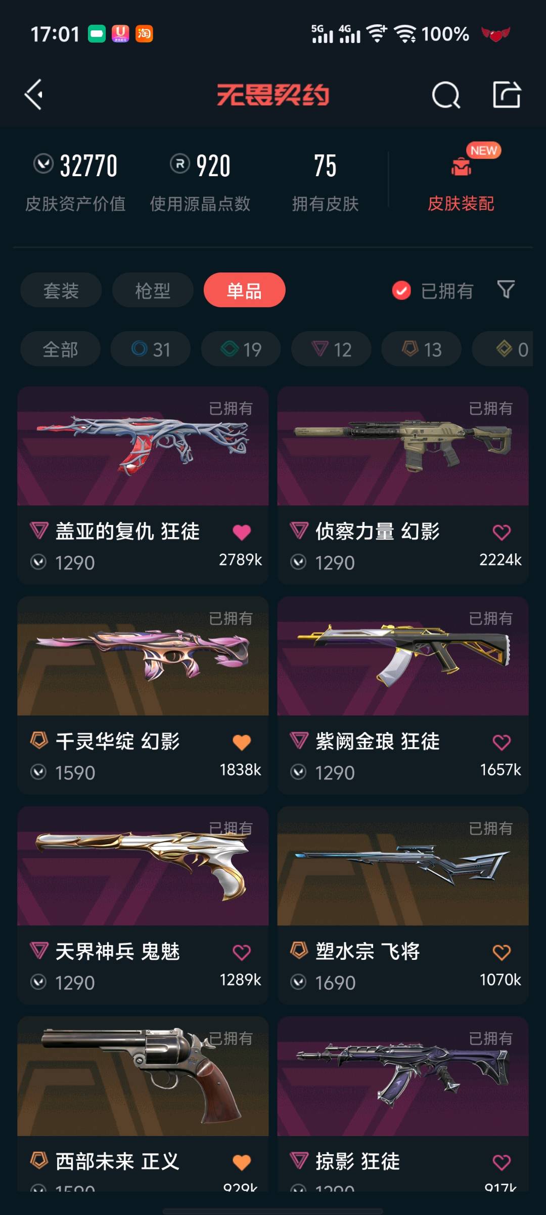 • 皮肤资产价值: 32770