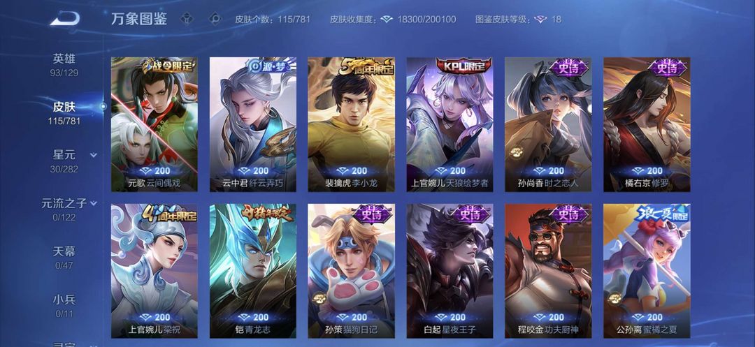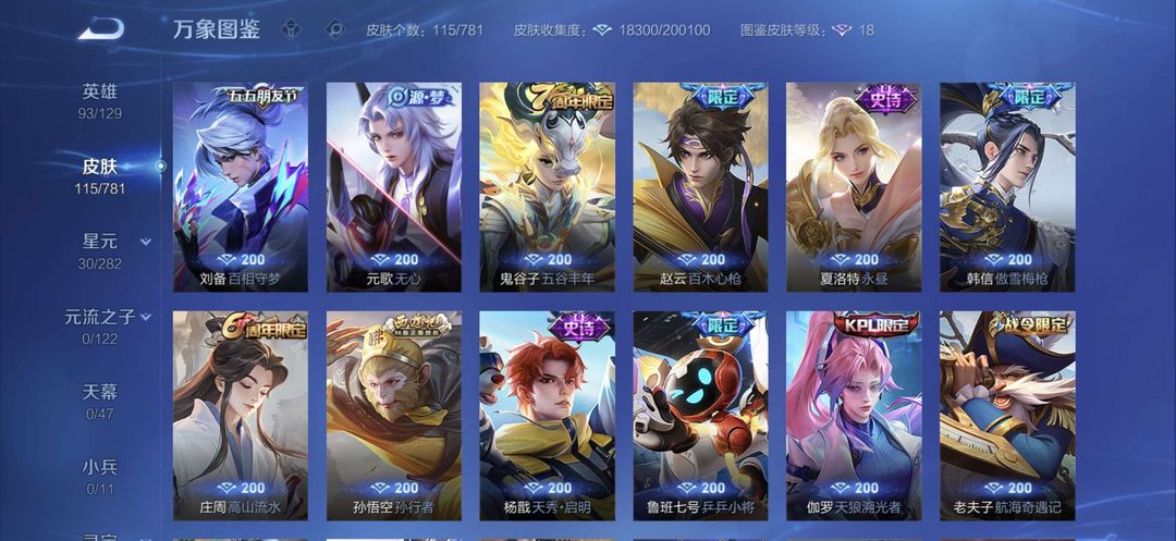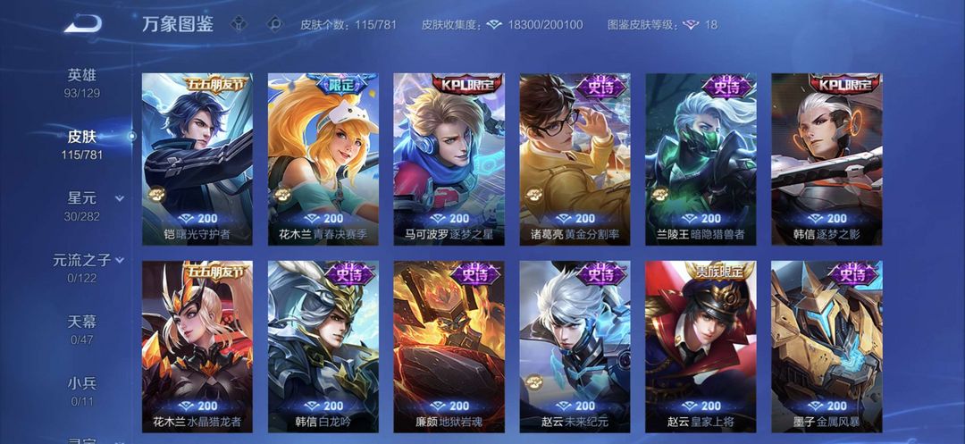 【非云直上】V10★皮肤榜一★539皮满典藏★鲁班时之奇旅会员★虞姬黛羽霜翎星元★吕布白金战神★全能大师★多金标★个性按键