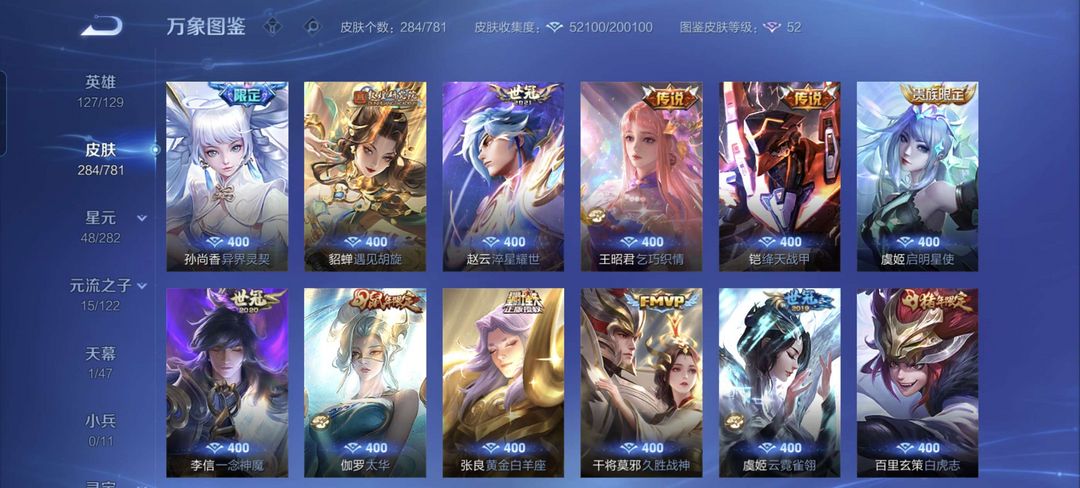 扫码登录。VIP10。385皮肤,七水,四星元,双王者之证!武则天神域,李白荣耀典藏,全息碎影,全符文,各种限定,各种机甲,皮肤都有,绝对满足各位