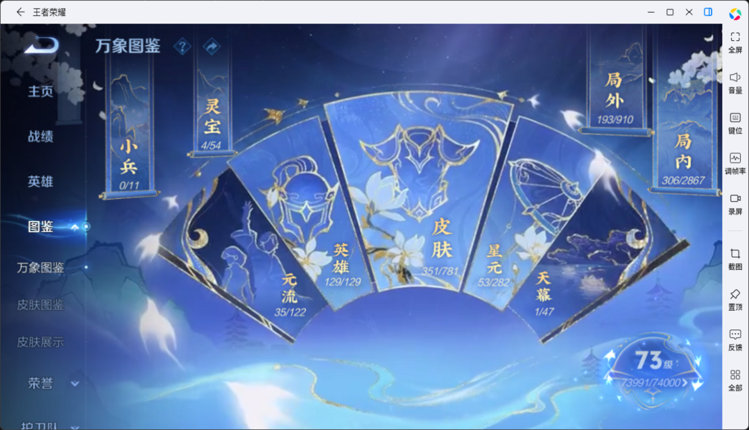 v10、537皮6水4无双、安琪拉-颠倒童话·魔镜、朵莉亚-神骥、遇见神鼓、齐天大圣、白虎志、韩信荣耀典藏、73传说、时之魔女、瑶无双、青丘、九尾、神器明辉仪