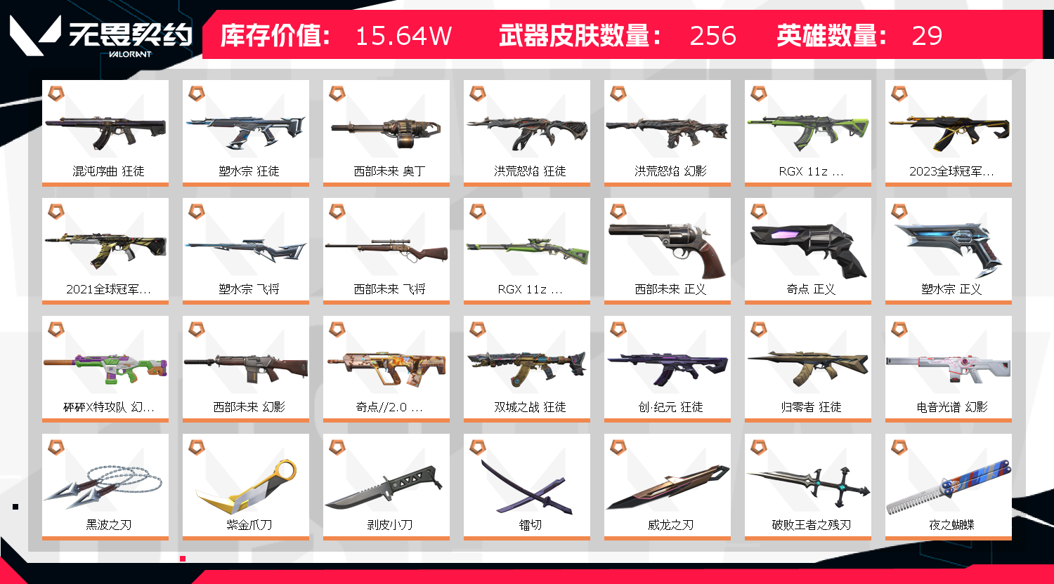 16W2700R✨26VCT✨21+22+23冠军套神话挂饰✨32近战黑波紫金显卡✨28狂徒显卡流脓