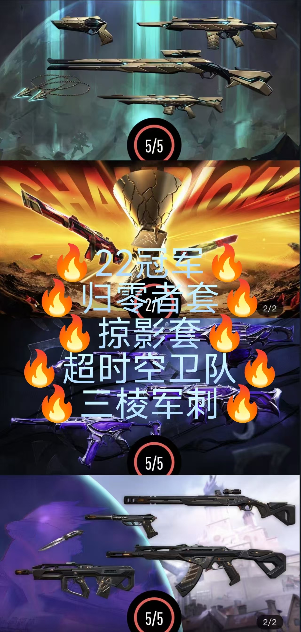 🔥钻石🔥超时空卫队🔥三棱军刺🔥22冠军🔥掠影套🔥日冕狂徒🔥紫金🔥堕天狂徒