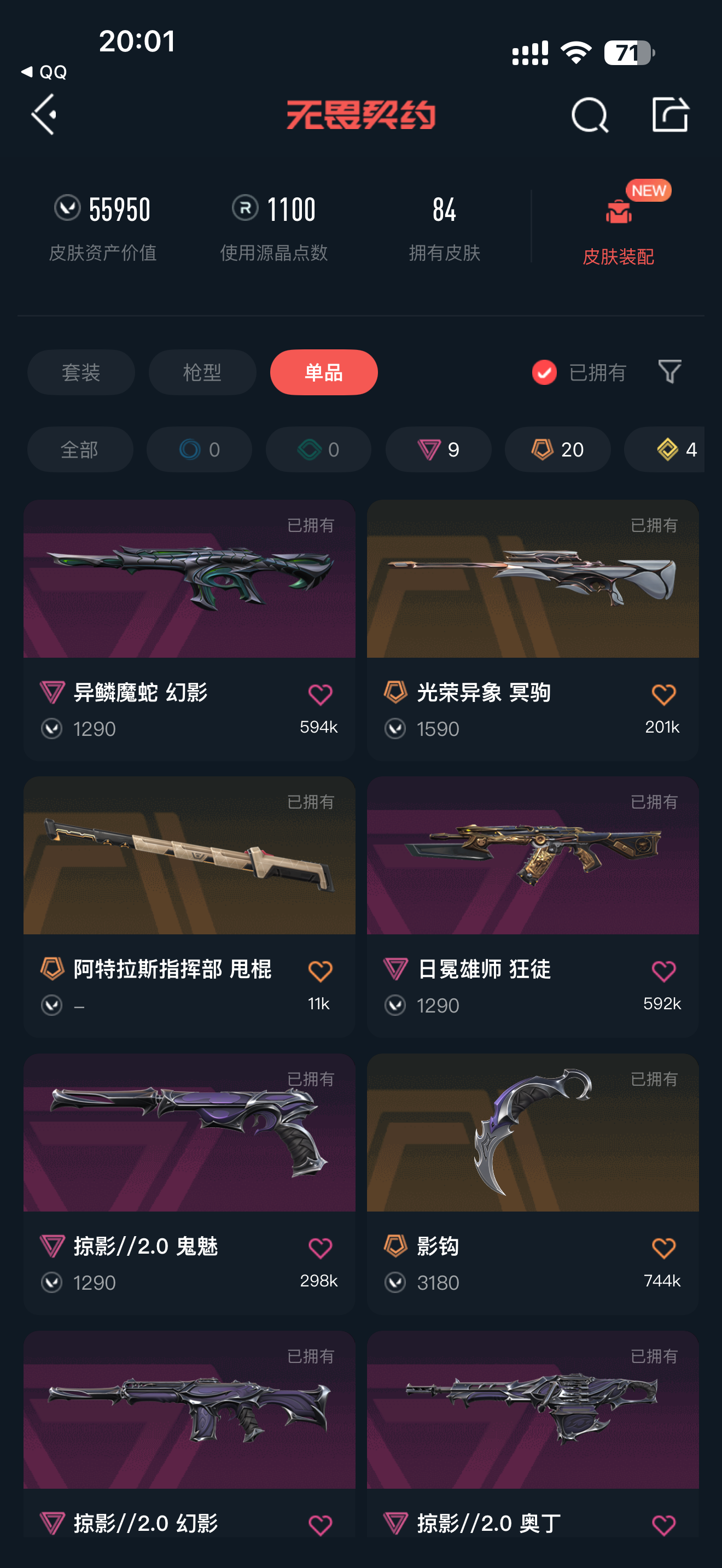 • 皮肤资产价值: 55950