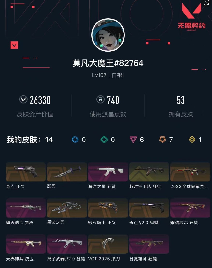 • 游戏区服:无畏契约-wegame / wegame / wegame