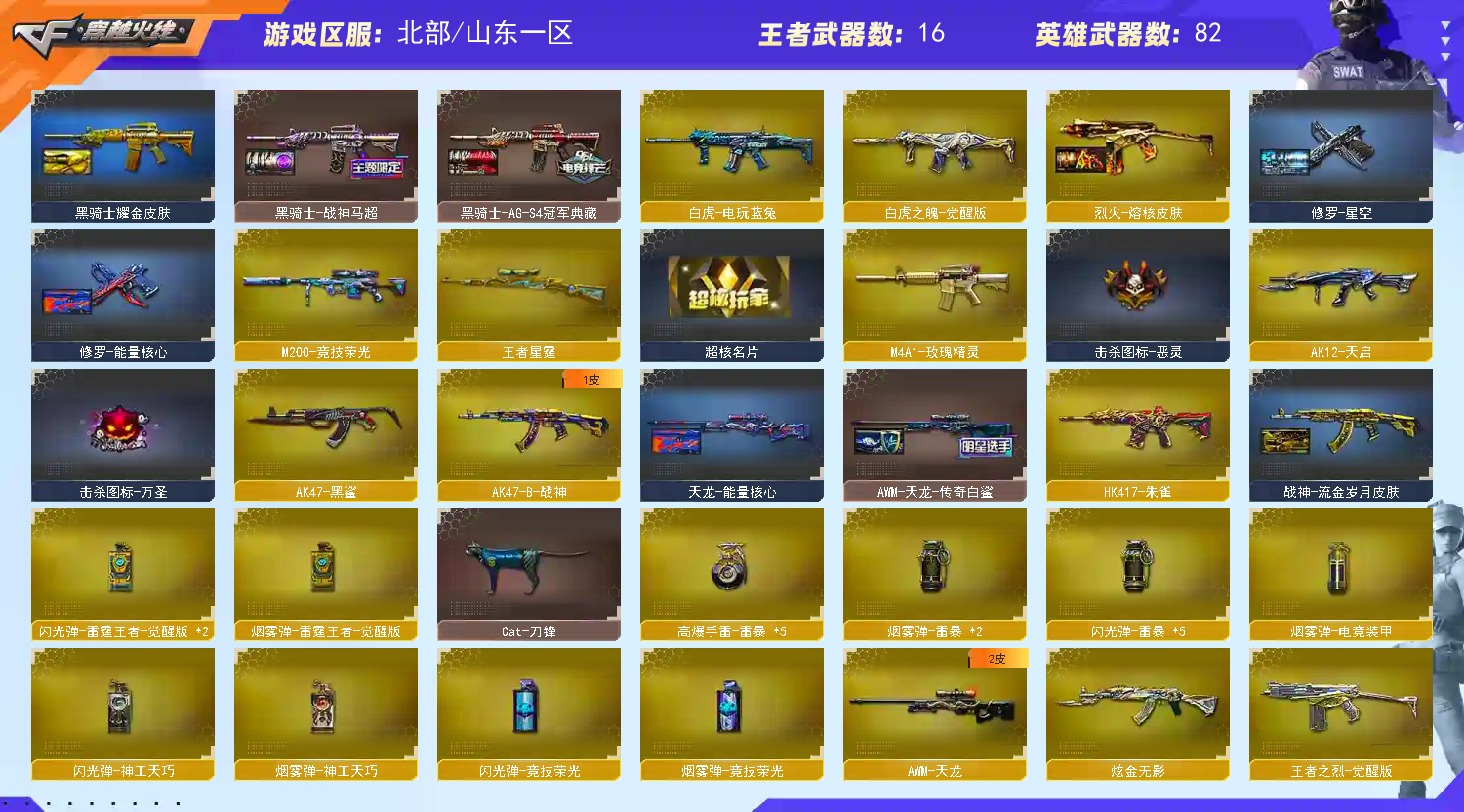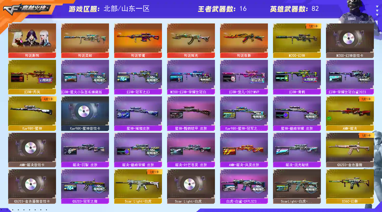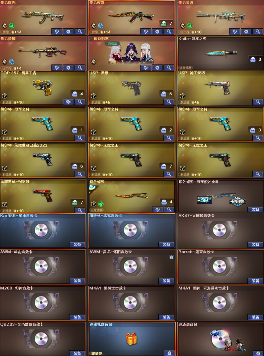 幻神星火宠儿7皮音✨白虎白鲨冠军~裁决流光音4皮✨雷神十周年臻藏~6特满配副武✨灵眸夜影ak