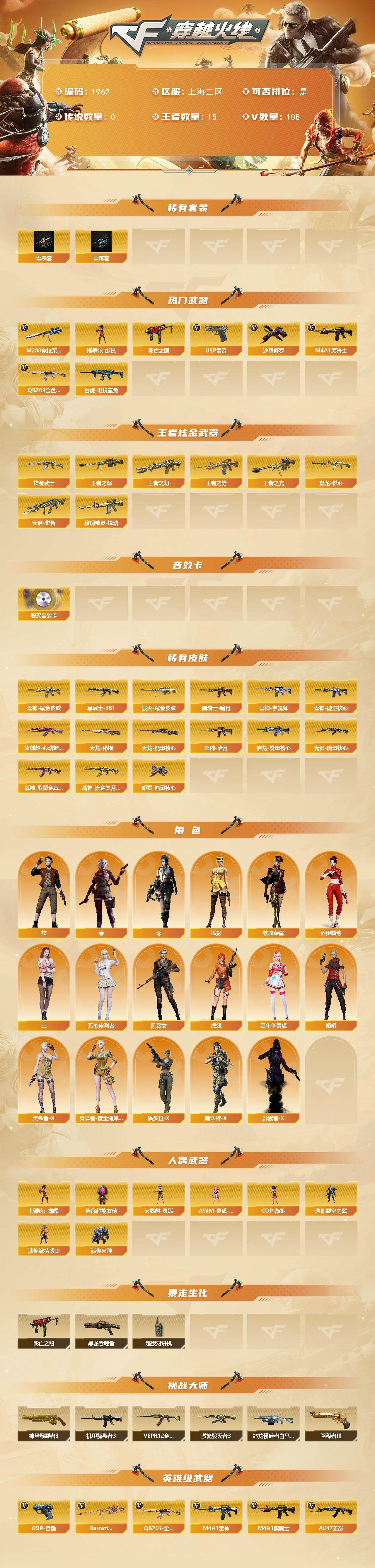 • 游戏区服:穿越火线 / 电信区 / 上海二区