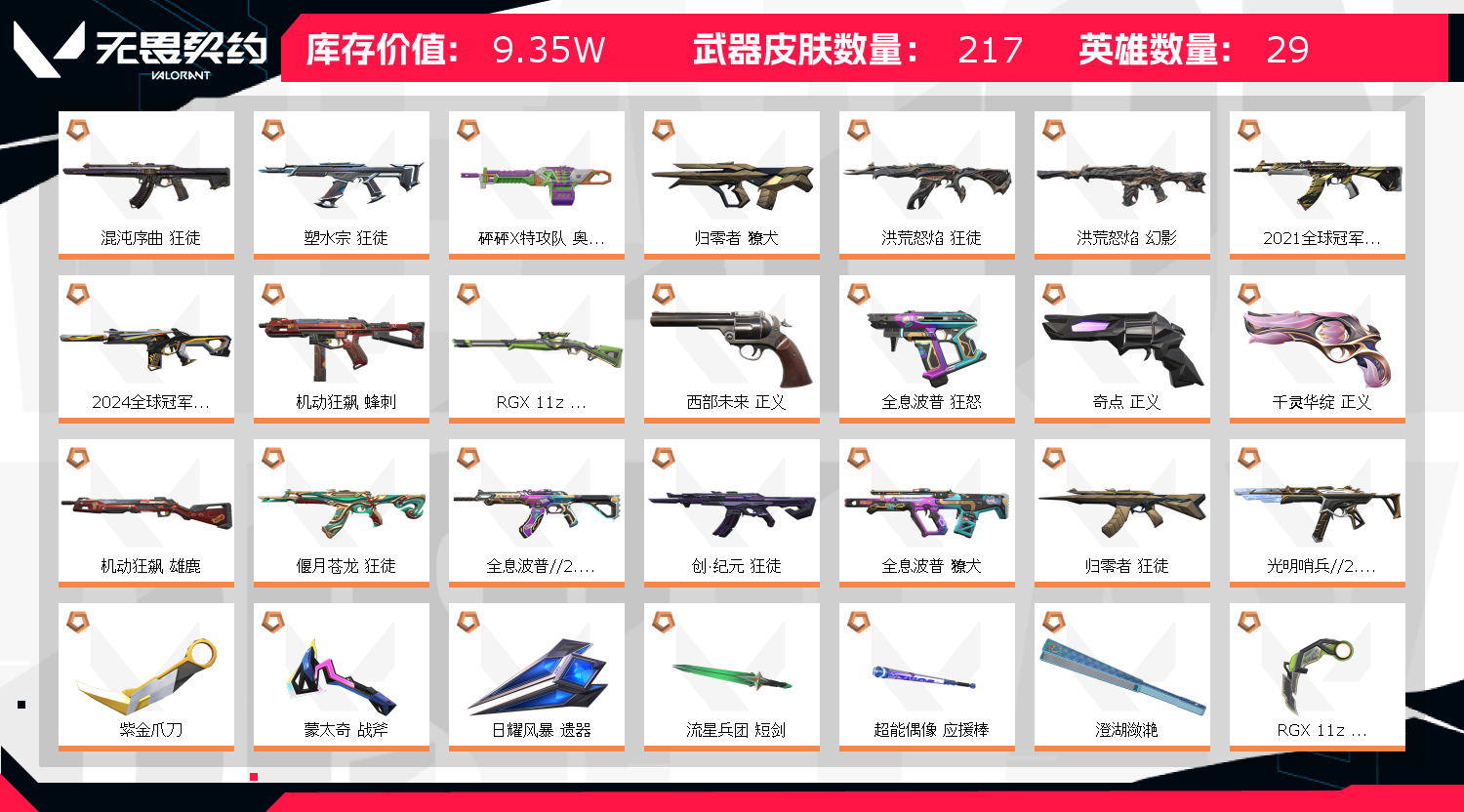 首页 > 租号大厅 > 无畏契约-wegame > wegame/wegame > 15w库存可排位丨马年ak21冠军17把ak皮肤丨螺丝刀|炸鱼挂机秒顶号丨粉色系套丨每个武器都有皮肤
