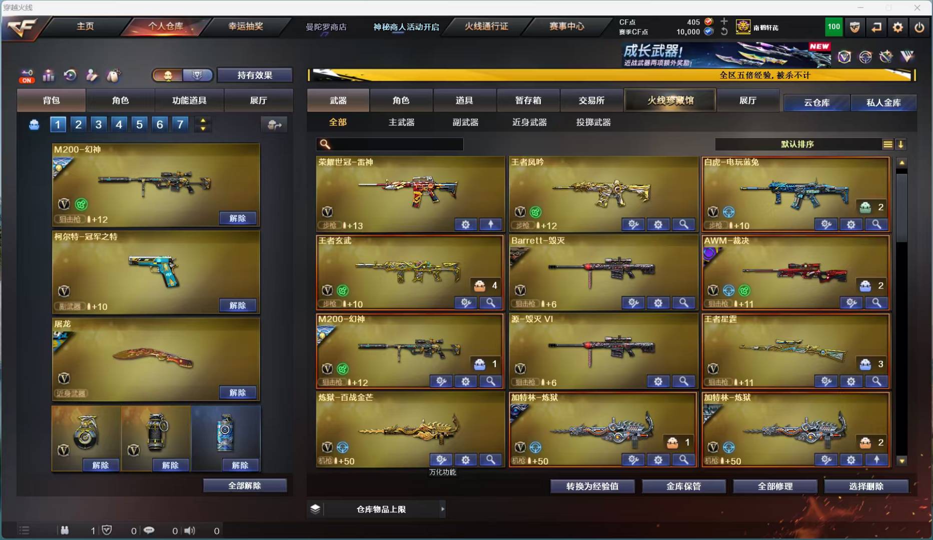 首页 > 租号大厅 > 穿越火线 > 电信区/福建一区 > 爆破生化号|神威莲华&传说影刹|东部 幻神、裁决、金色蔷薇、白虎三件套,7手枪,冠军之特,全装爆破