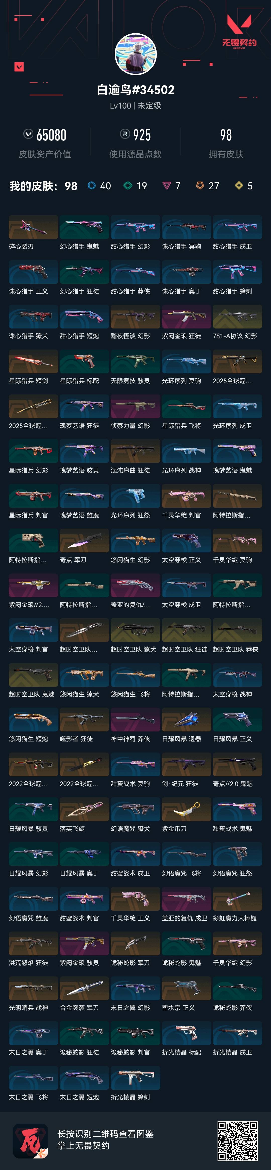 • 皮肤资产价值: 65080