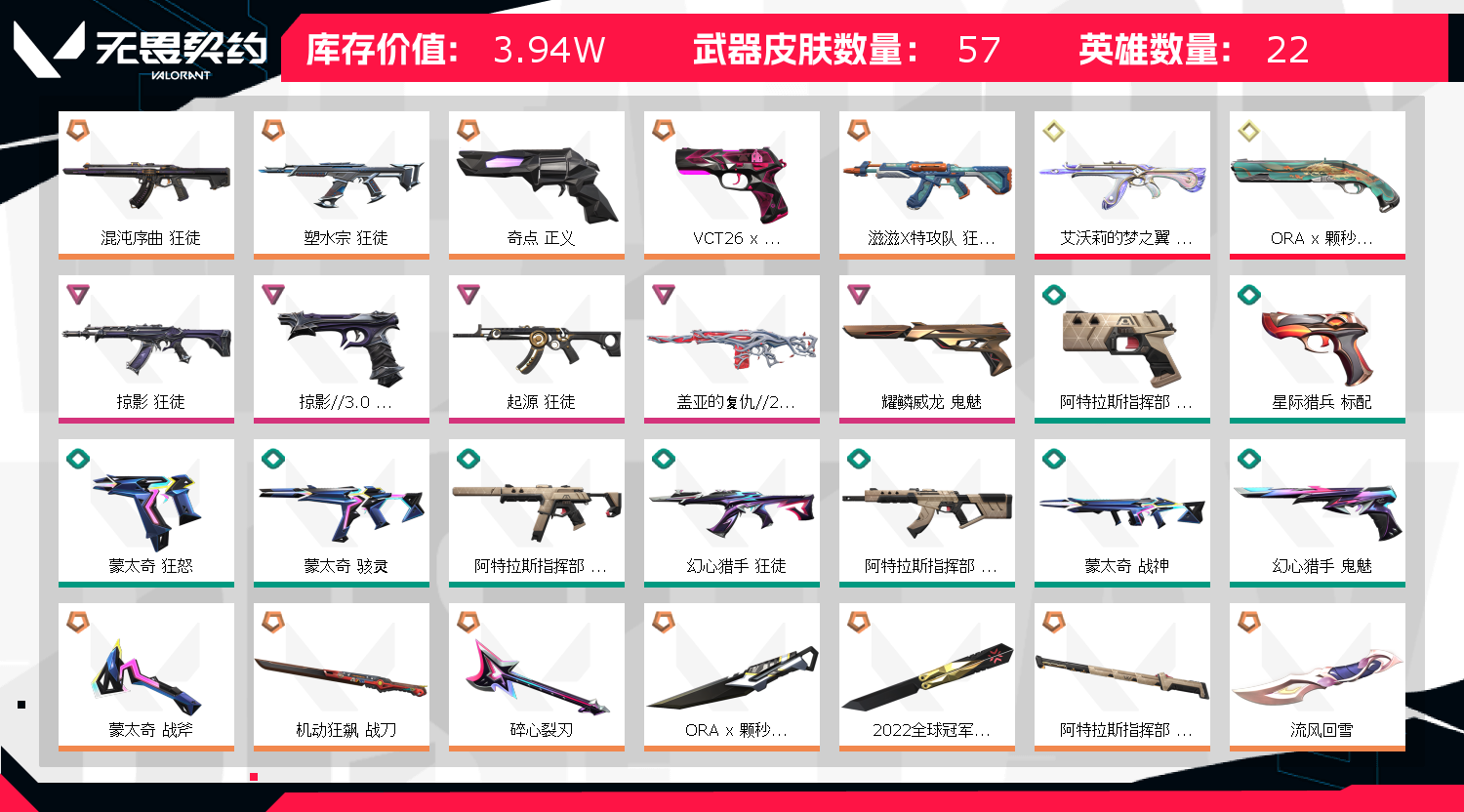 • 皮肤资产价值: 39360