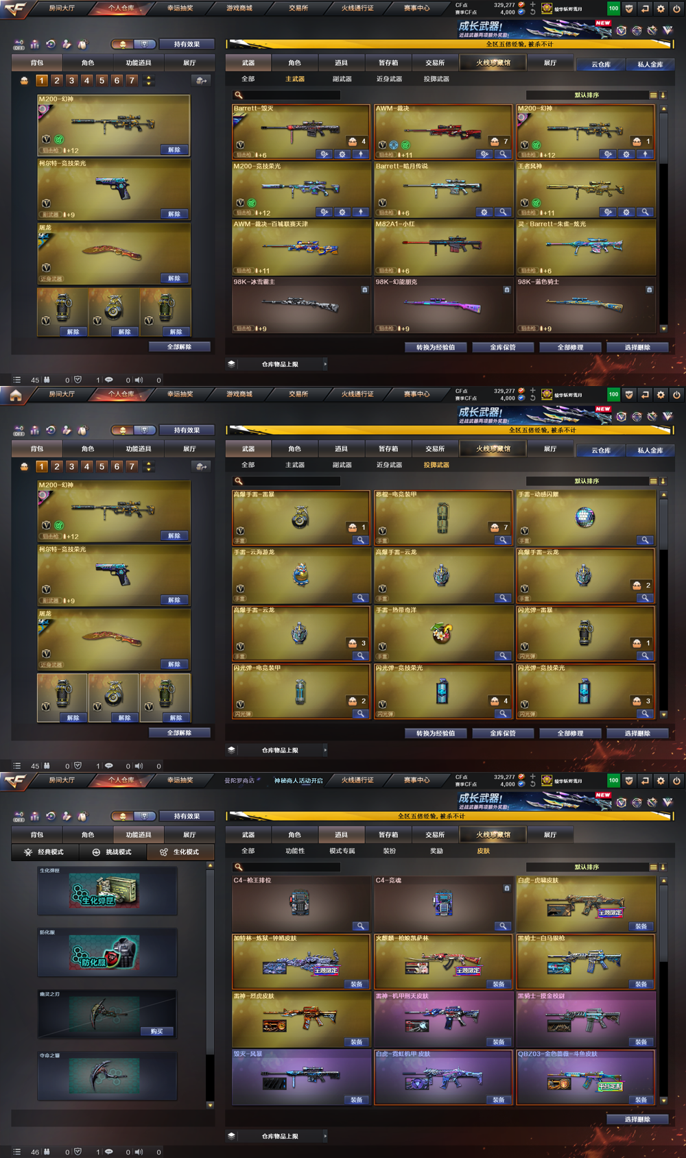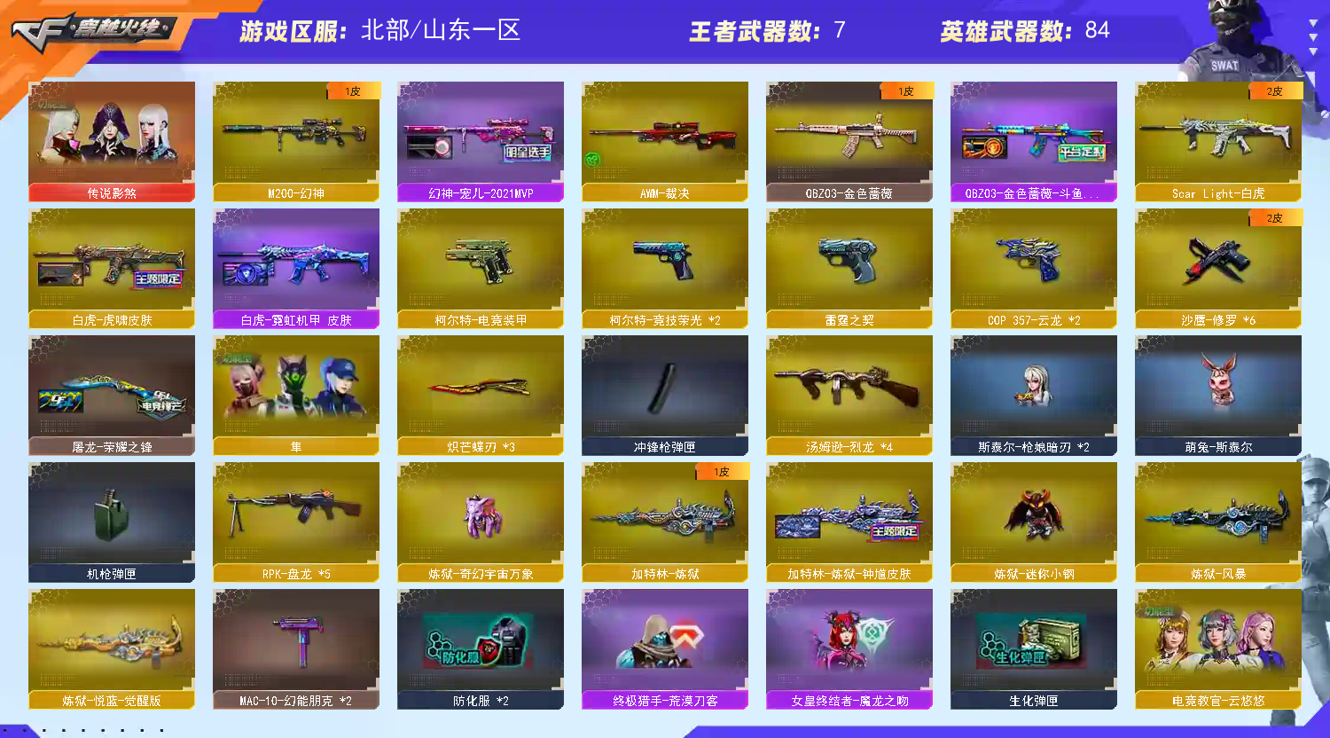 生化爆破全能|金色ID|传说影煞|隼|泡泡象|斯太尔萌兔|枪娘*2|蝴蝶刀*3|幻身带皮|白虎带皮|