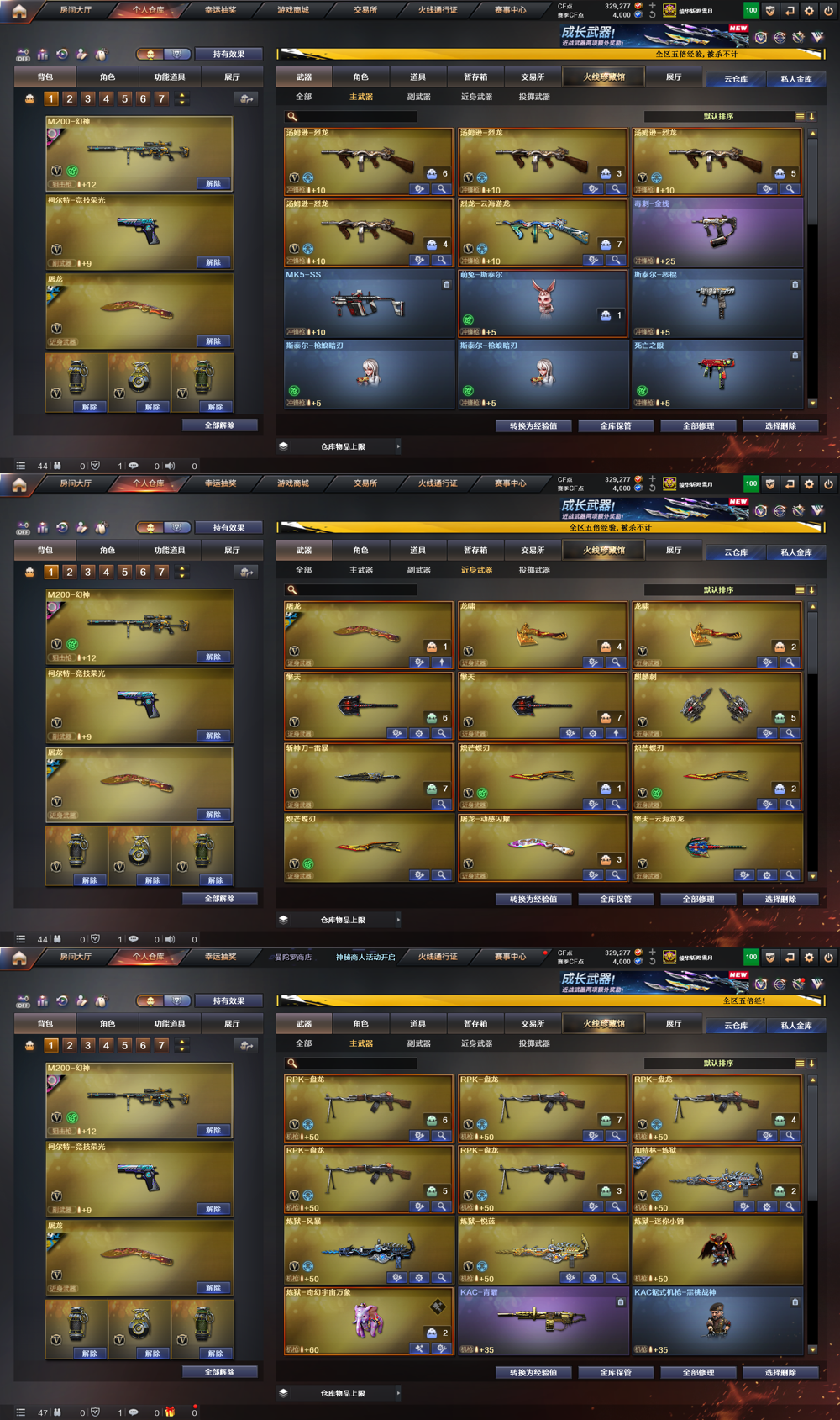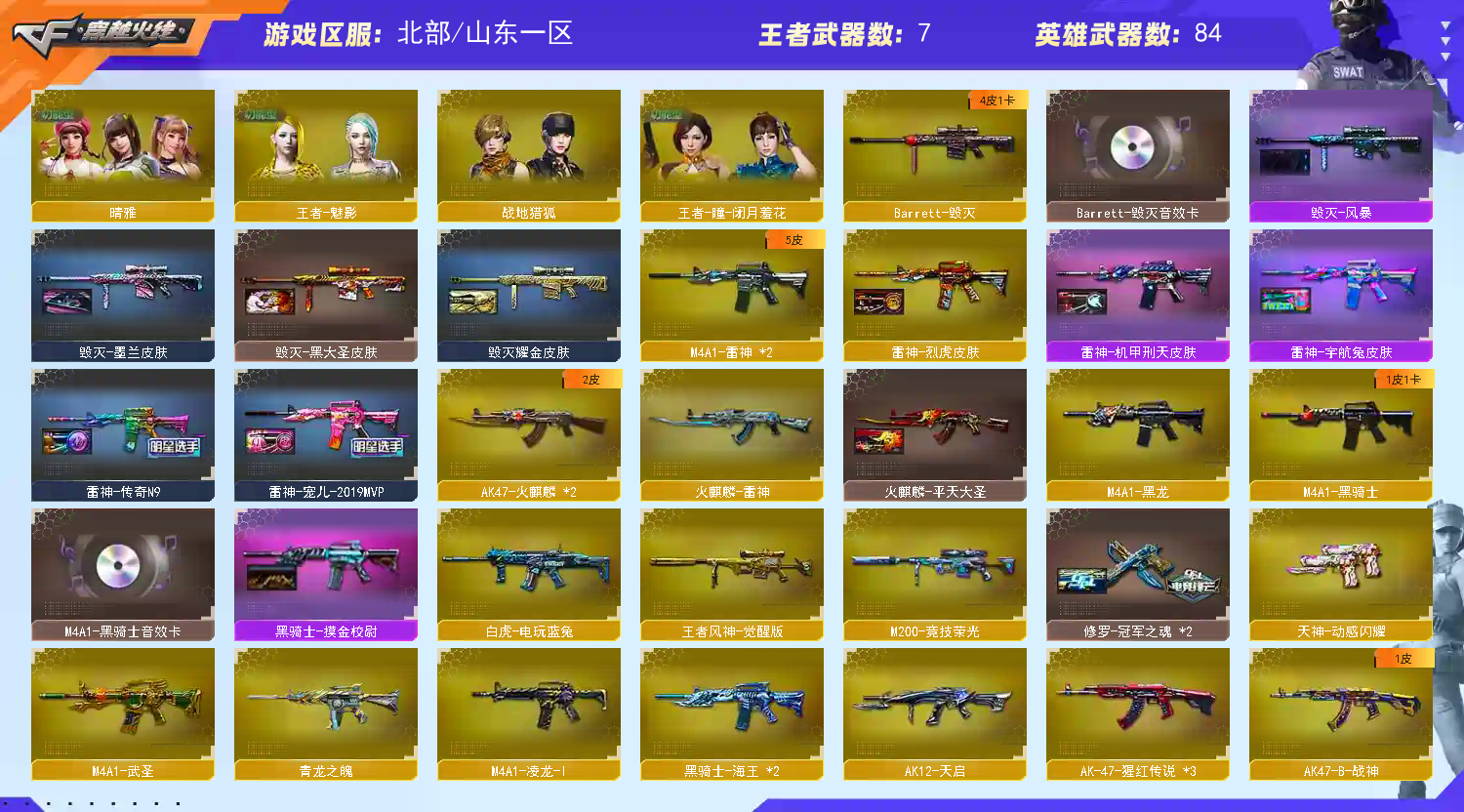 生化爆破全能 还有炼狱小刚 飓风双雄等生化猎手终结者全皮肤;炽芒蝶刃,传说影煞,隼,电竞教官-云悠悠,晴雅,RPK-盘龙,QBZ03-金色蔷薇,