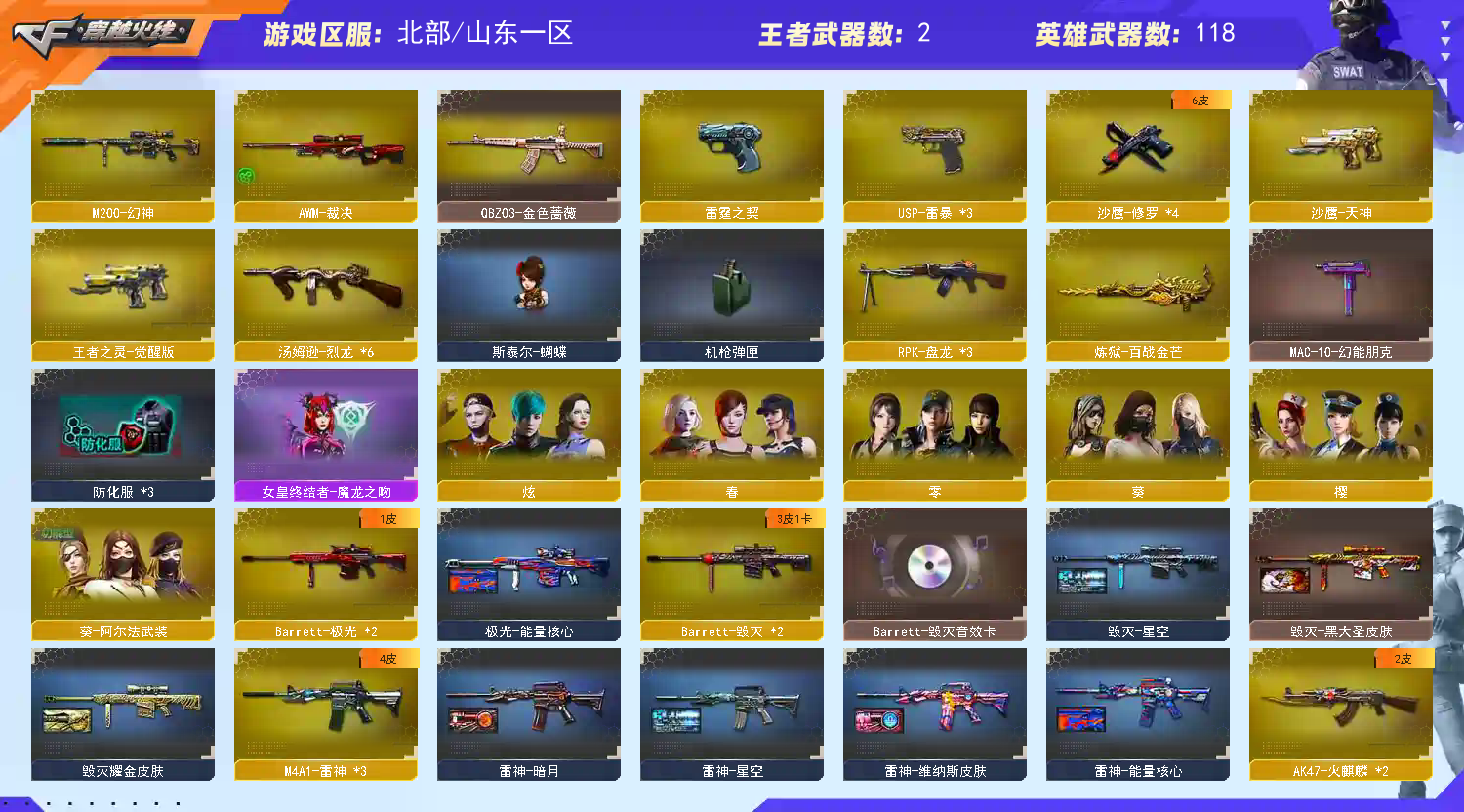首页 > 租号大厅 > 穿越火线 > 网通区/山东一区 > 118v❤️幻神❤️6烈龙+斯泰尔蝴蝶❤️满配手枪❤️雷霆套❤️裁决❤️电玩白虎❤️qbz蔷薇