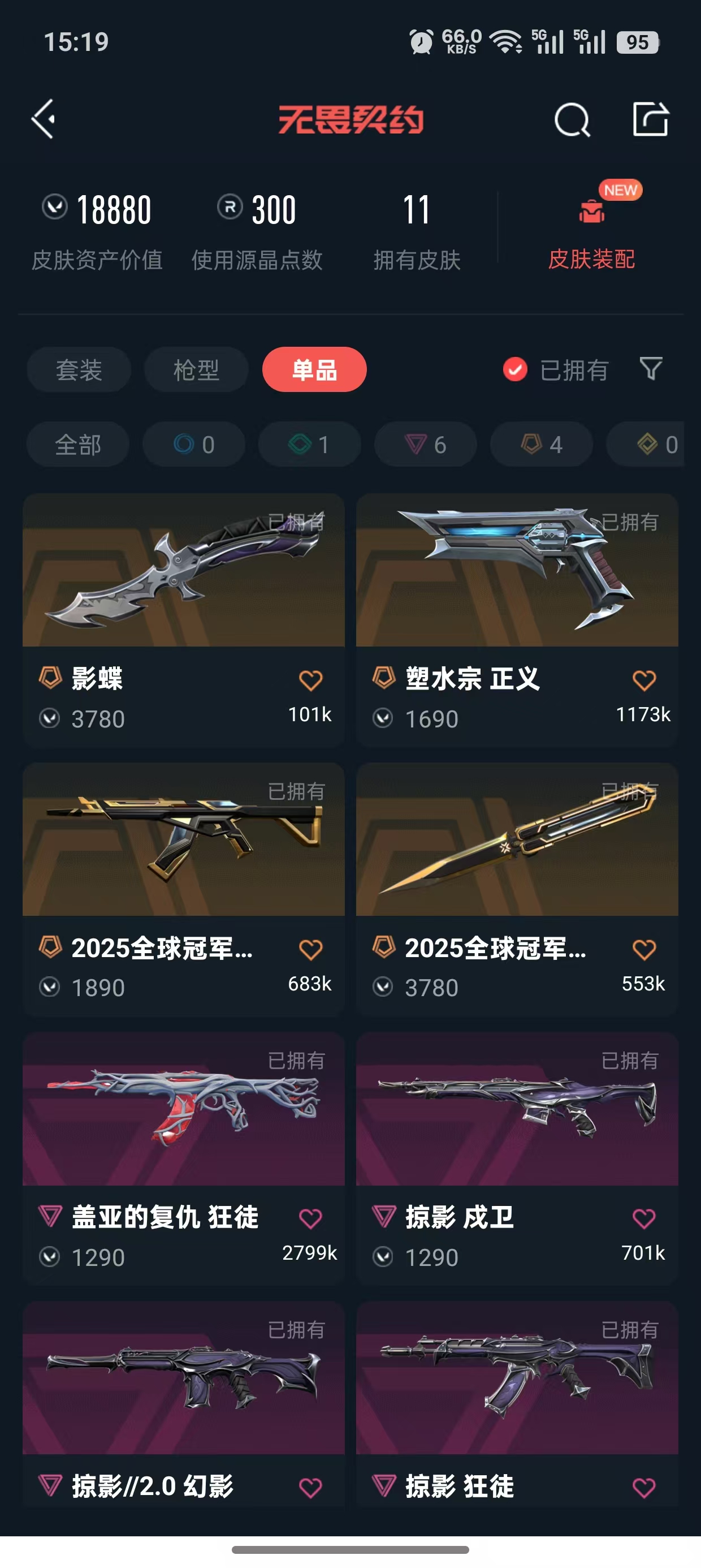 • 皮肤资产价值: 18880