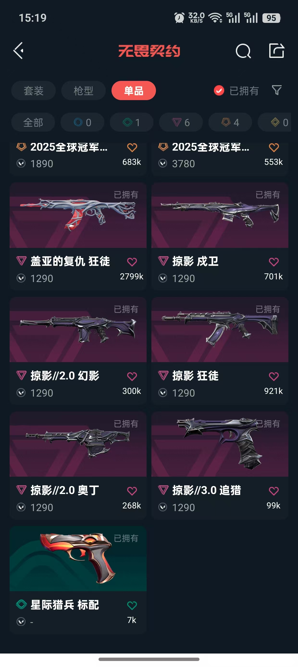 首页 > 租号大厅 > 无畏契约-wegame > wegame/wegame > 冻结秒解✨掠影3.0套✨25冠军套✨盖亚的复仇 狂徒✨塑水宗 正义