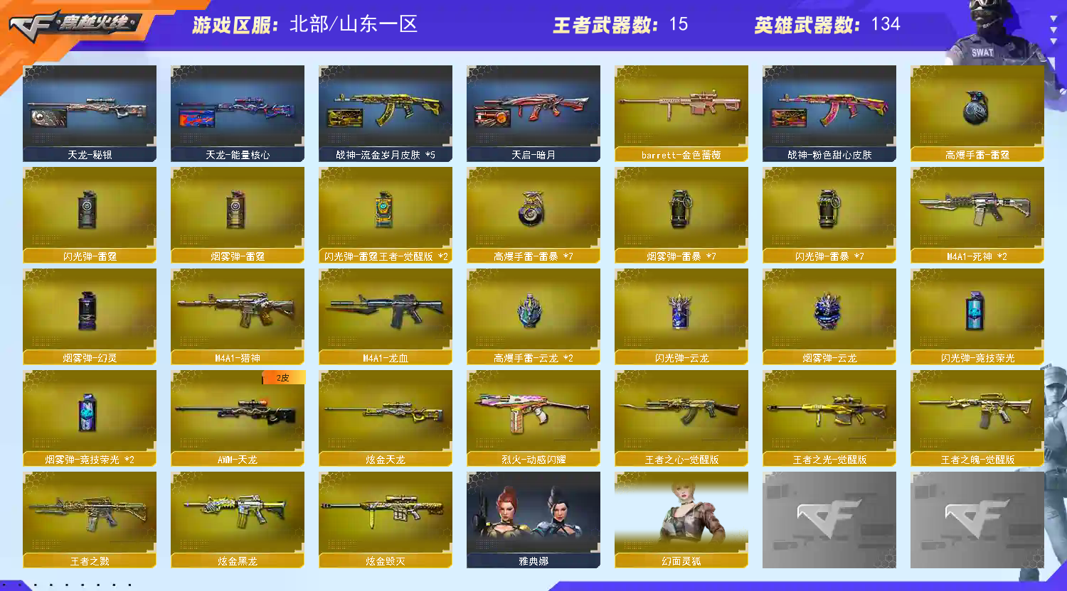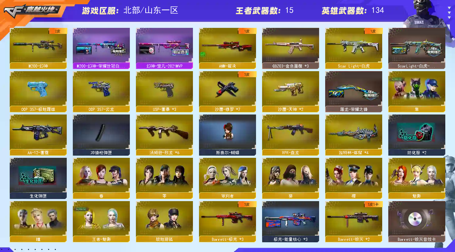 位勿退出! 北部精品爆破/生化号 幻神(宠儿白鲨双皮) +雷暴usp云龙cop+裁决白虎雷神毁灭等+隼蝴蝶6列盘 生化、爆破排位够玩 开挂必究,祝老板游戏愉快;USP-雷暴,隼,RPK-盘龙,QBZ03-金色蔷薇,M200-幻神,Scar Light-白虎,