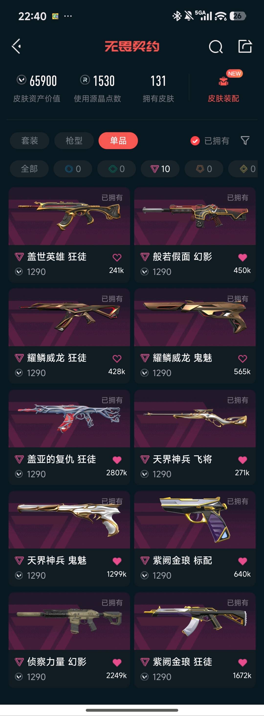 • 皮肤资产价值: 65900
