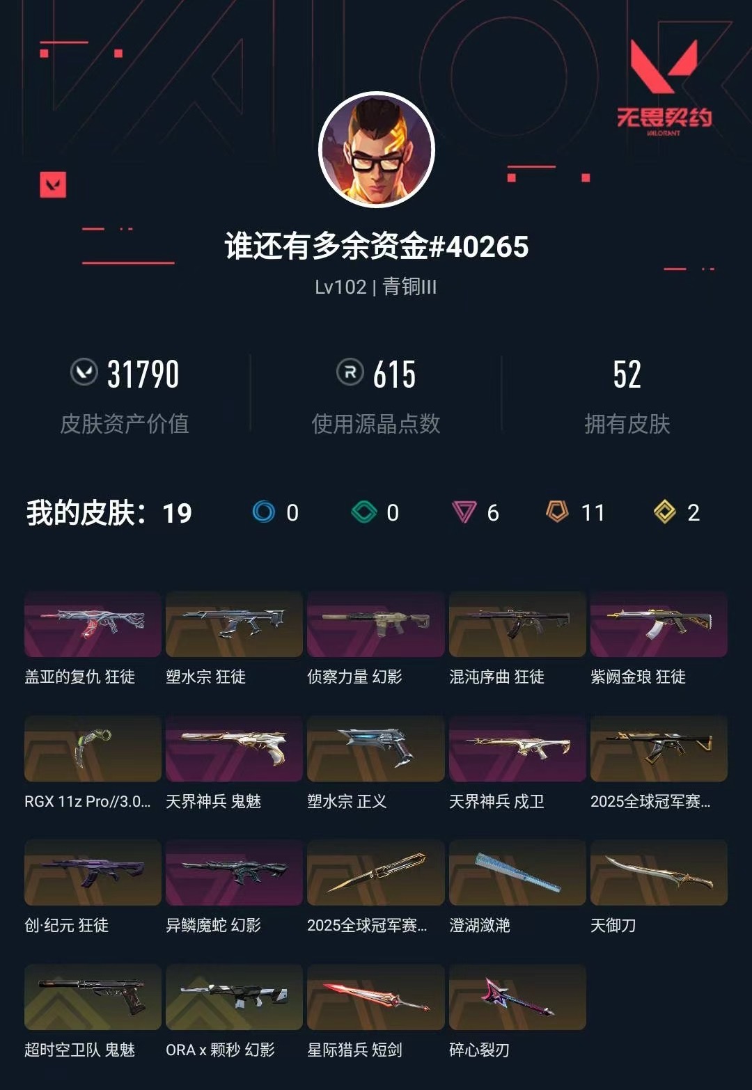 • 游戏区服:无畏契约-wegame / wegame / wegame