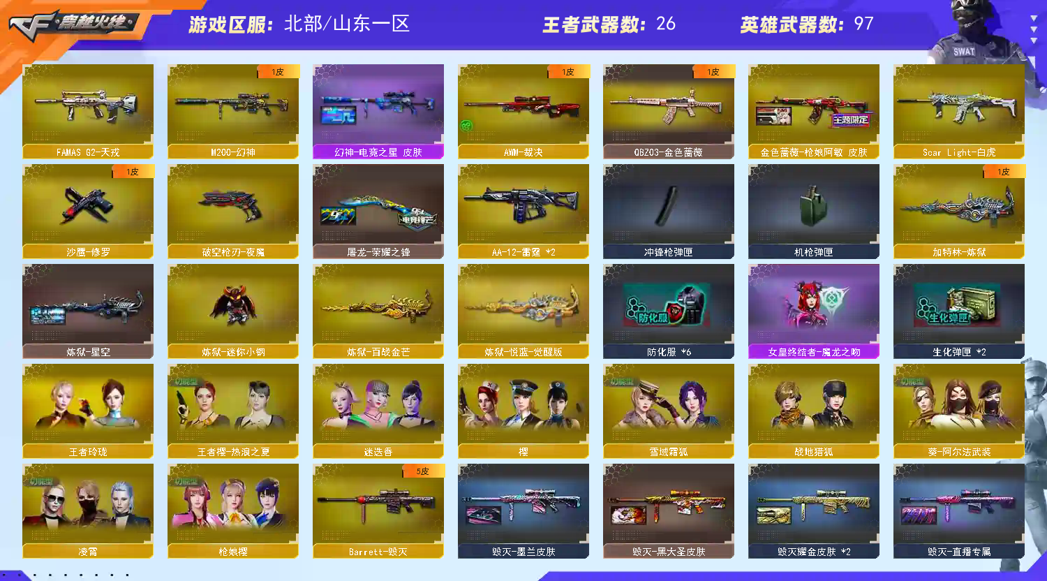 首页 > 租号大厅 > 穿越火线 > 网通区/山东一区 > 幻神电竞之星天罚法玛斯天戎幻神青龙白虎天罚天戎夜魔全套金色蔷薇凌霄直播专属