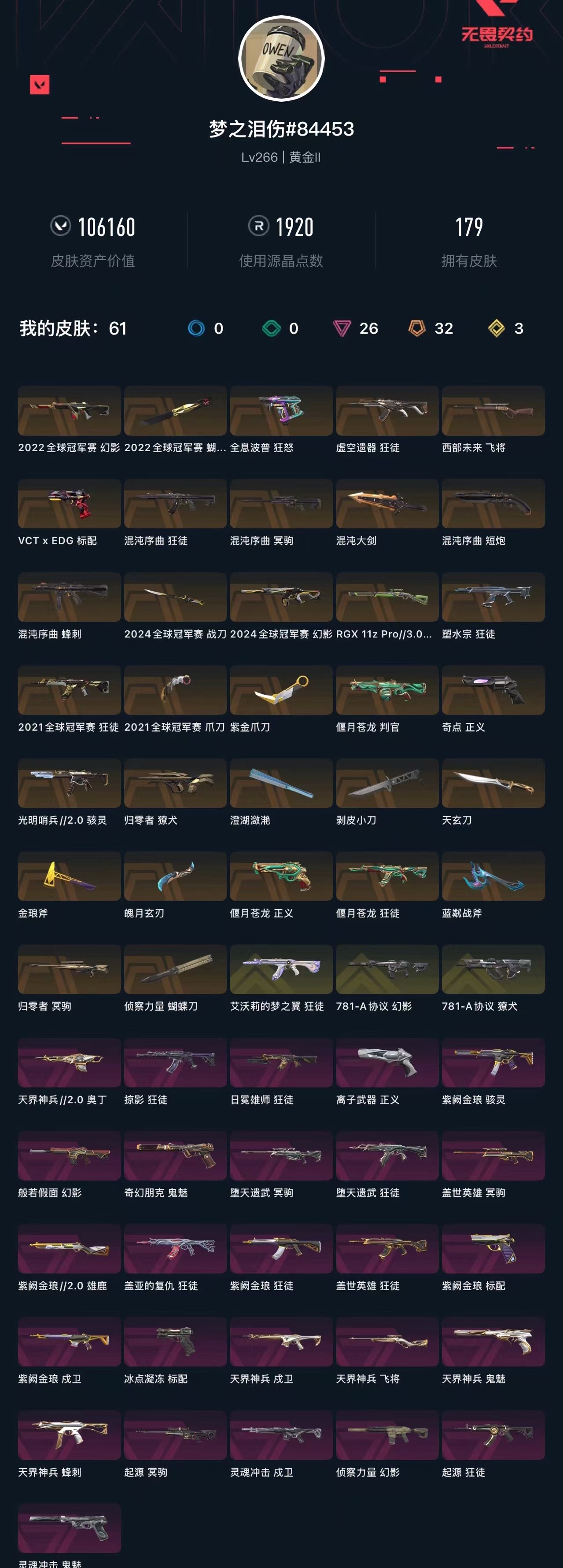• 游戏区服:无畏契约-wegame / wegame / wegame