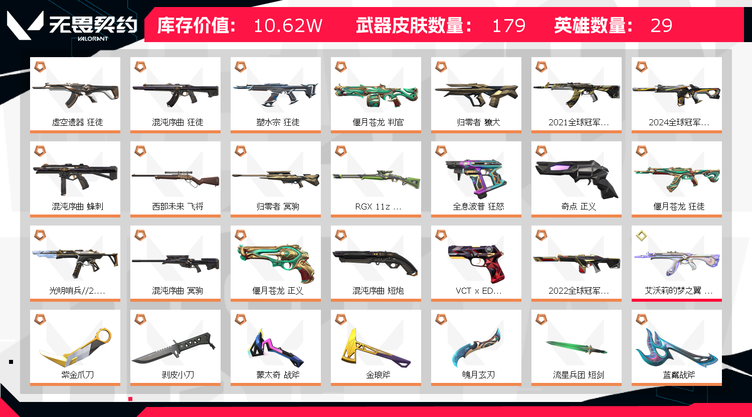 冻结秒解⚡11w库21冠军套24冠军套22冠军⚡剥皮侦察蝴蝶混沌套AK塑水艾沃莉盖亚紫金781侦察;紫金爪刀,剥皮小刀,偃月苍龙 判官,归零者 獠犬,盖亚的复仇 狂徒,虚空遗器 狂徒,掠影 狂徒,