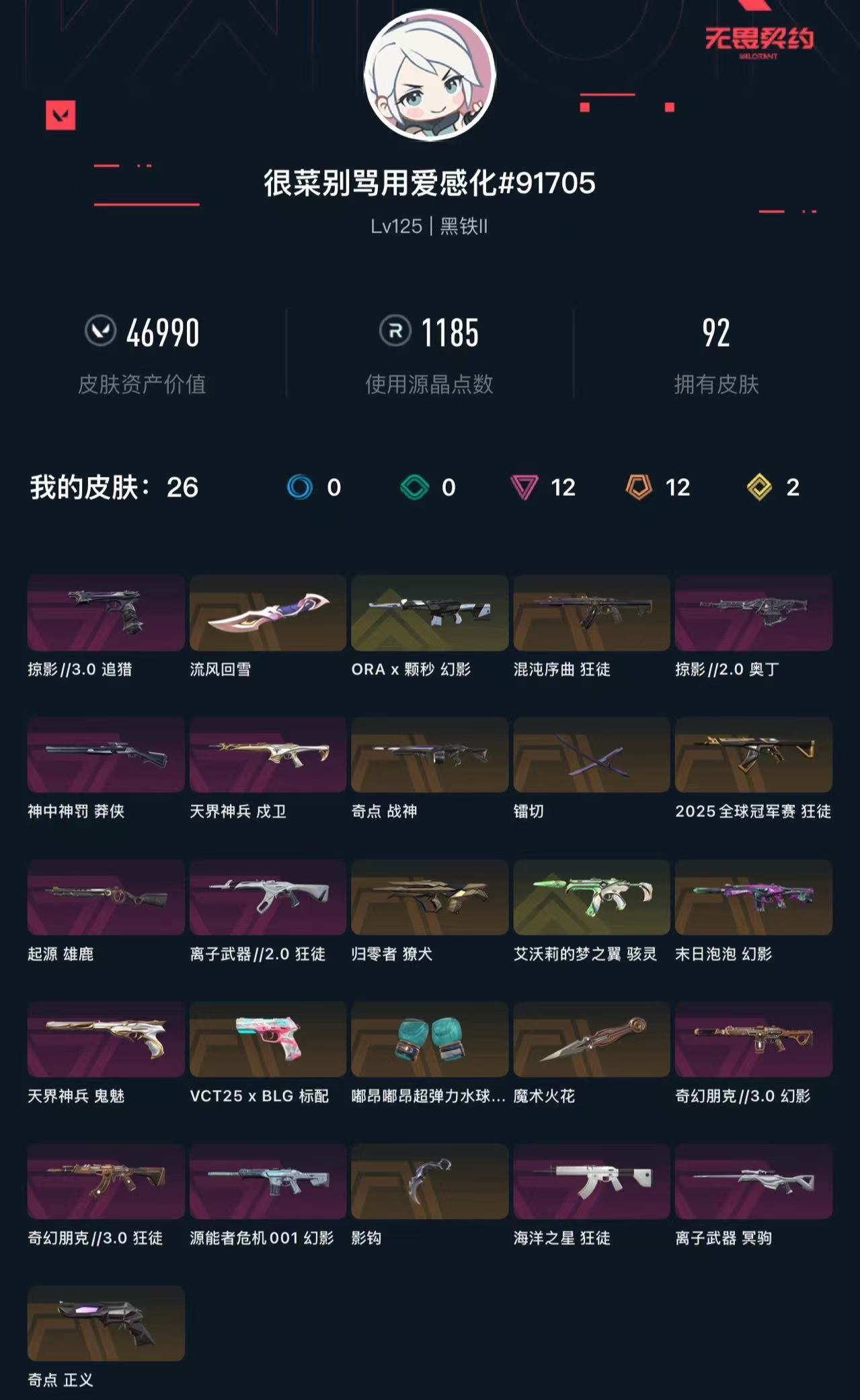 • 游戏区服:无畏契约-wegame / wegame / wegame