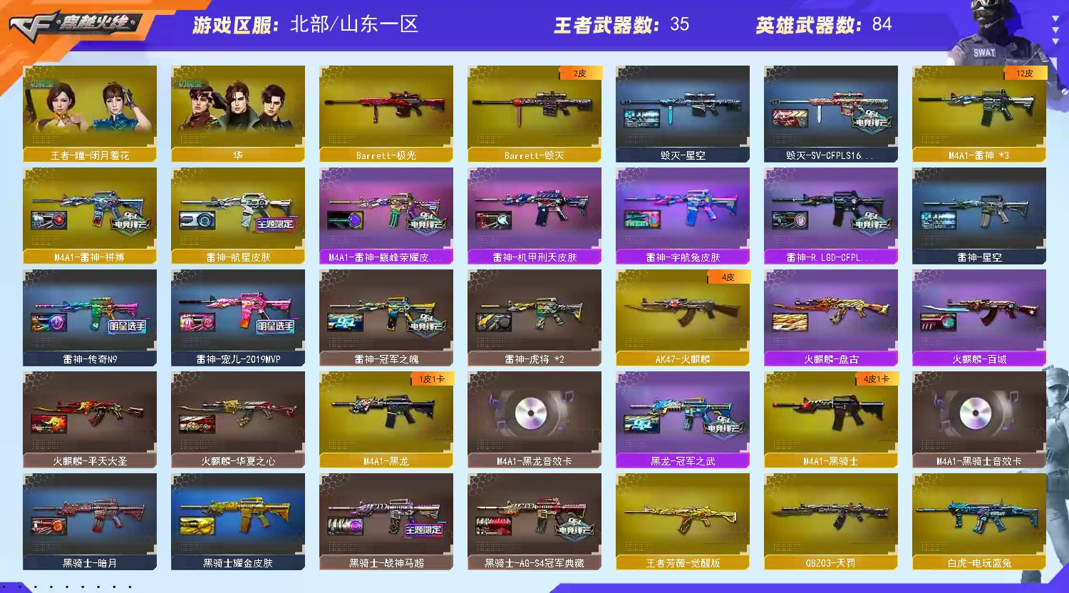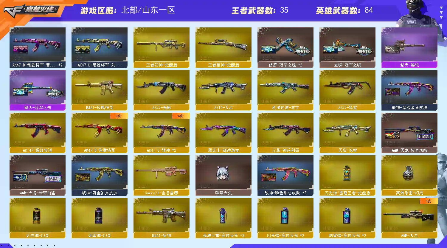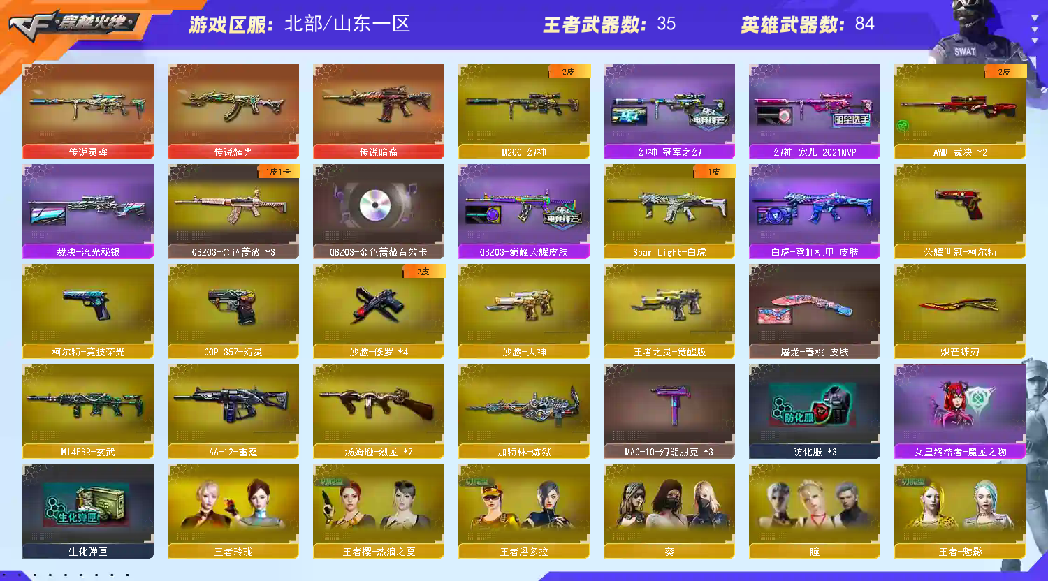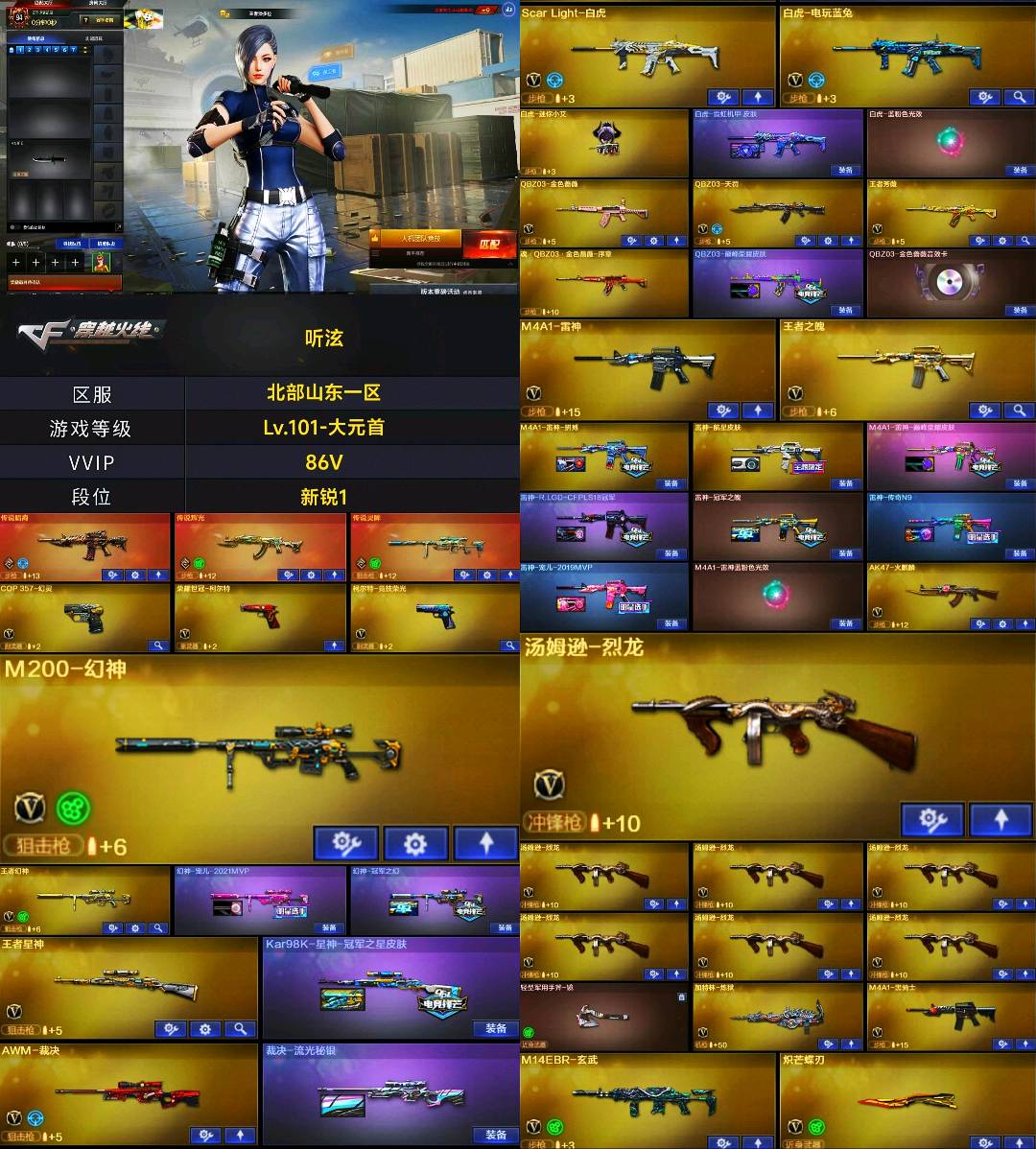 【🈲止使用鼠标宏,DMA,外挂进行游戏,造成损失后果自负!!!】 【订单时间快到了🈲止再开排位赛,导致账号禁赛的租客将被永久拉黑!】 本账号经过网络财产备案,一经发现直接报警处理立案追责,根据账号价值全额赔偿感谢支持谢谢合作谢谢合作!!!!禁止利用账号进行开挂、使用辅助违规软件诈骗等违规操作!;荣耀世冠-柯尔特,炽芒蝶刃,QBZ03-金色蔷薇,M200-幻神,Scar Light-白虎,传说灵眸,传说暗裔,