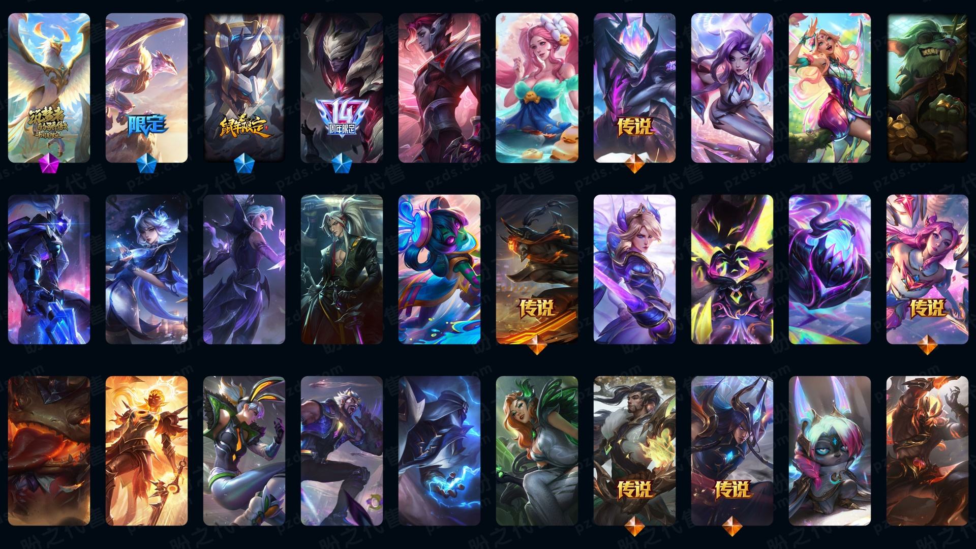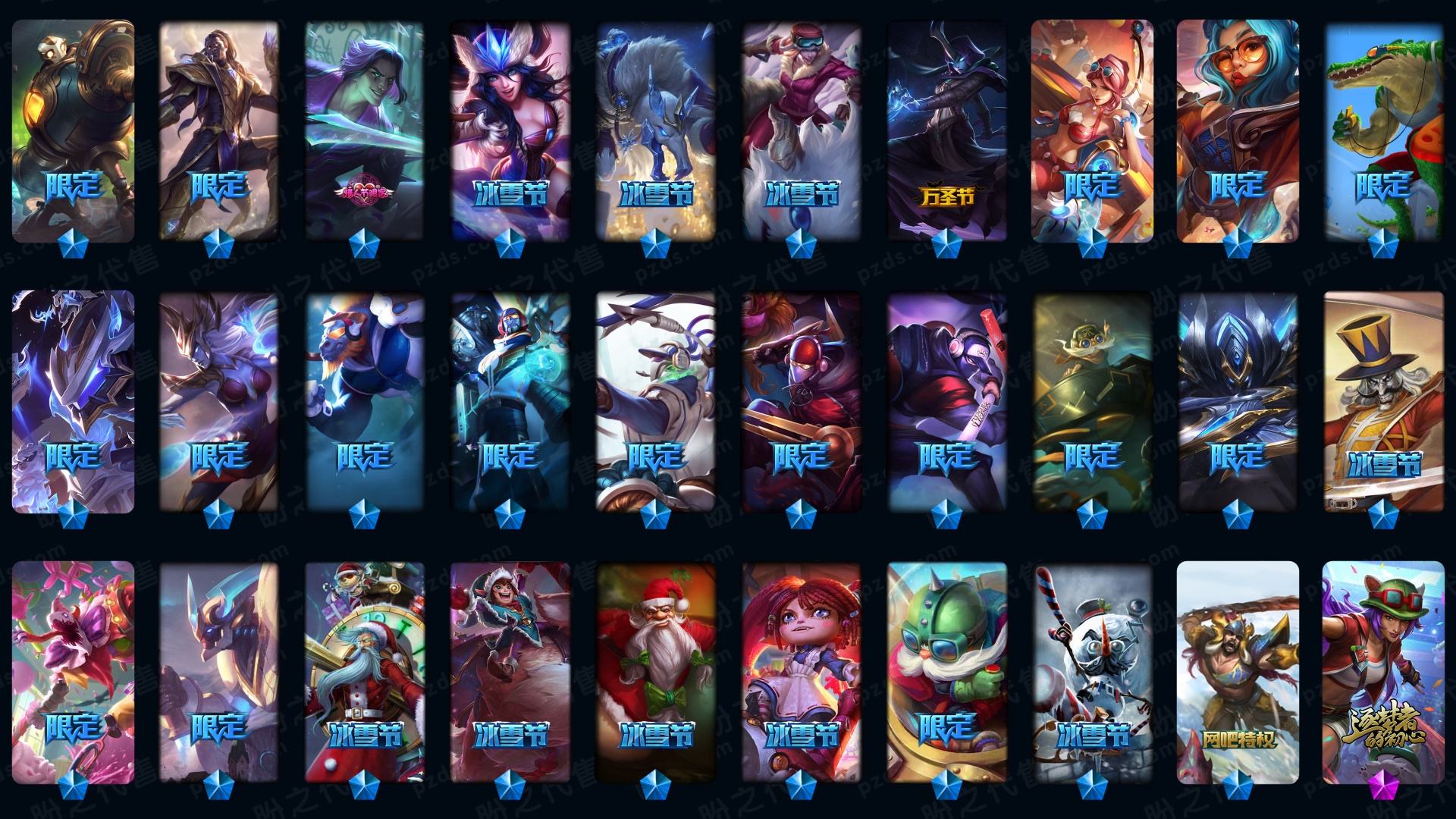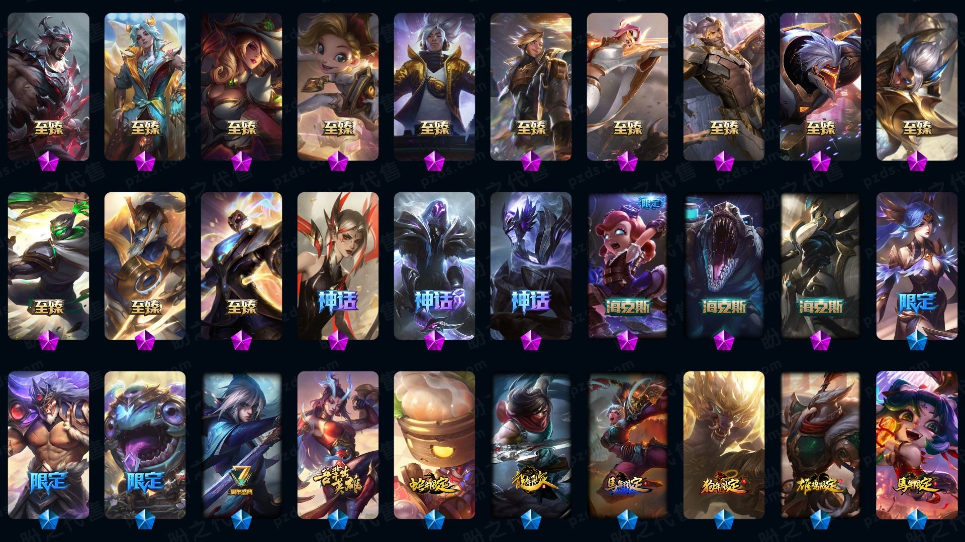 真实2031皮/89神话/龙瞎+蓝炫/哥特萝莉/龙猴+龙刀+龙琴/情人节全套/原计划全套/IG冠军限定/FPX冠军限定/200多限定/每个英雄都有全有/看图