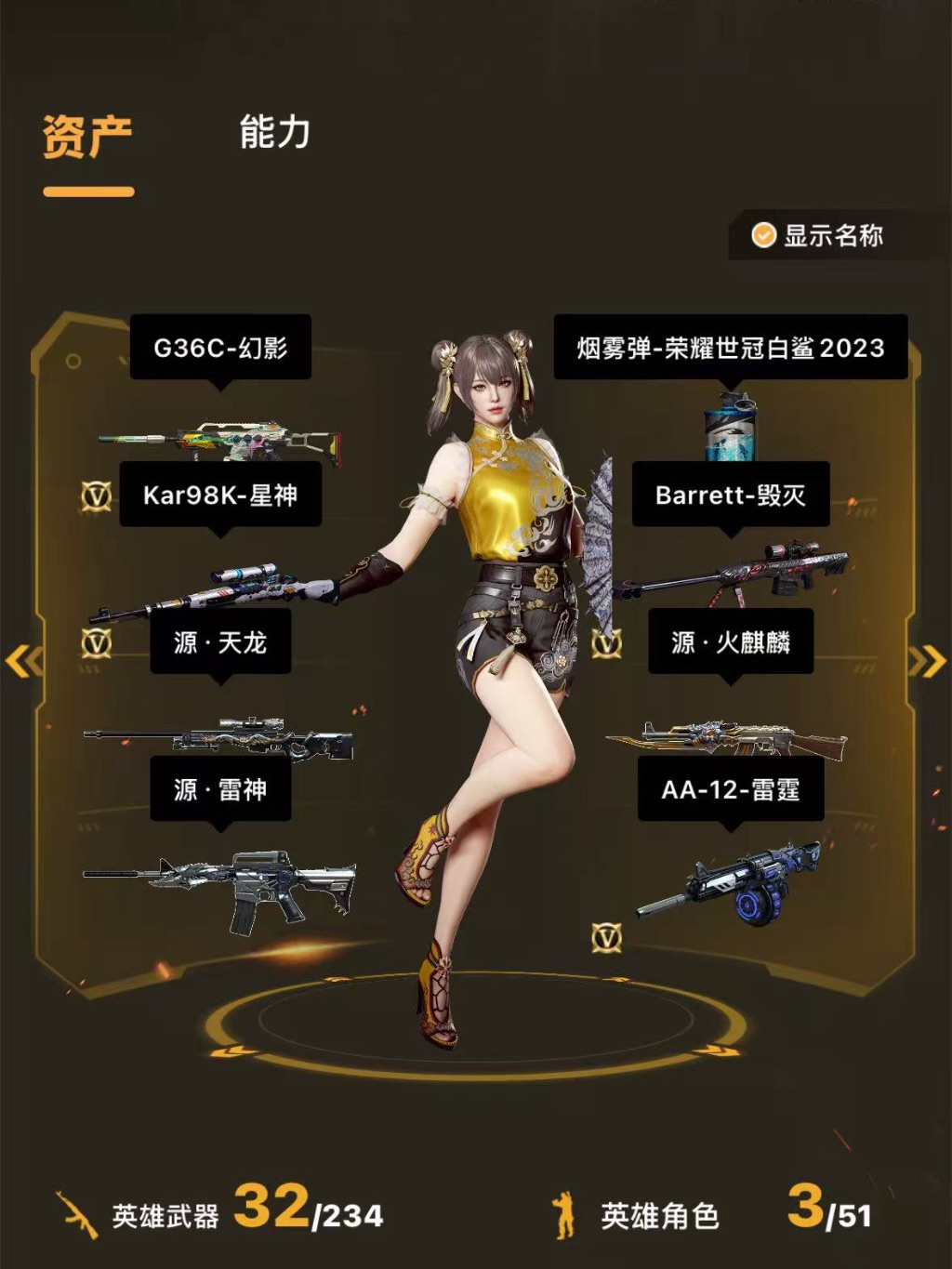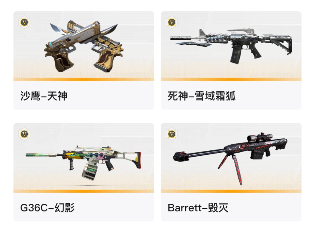 浙一、爆破号、98k星神、G36C-幻影、王者风神(觉醒版