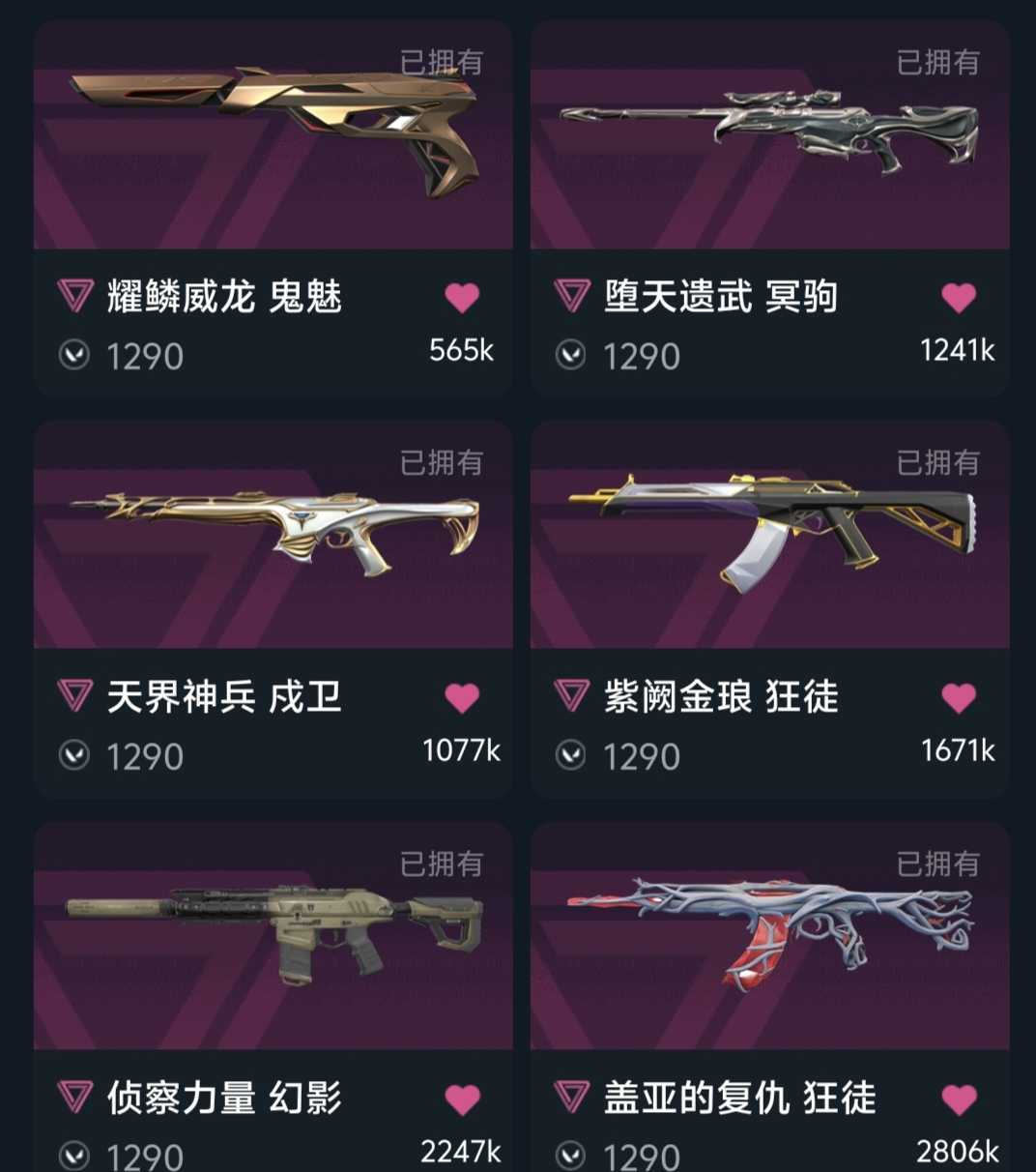盖亚混沌紫金流脓光荣异象狂徒❤️侦查幻影❤️天界戍卫堕天冥狙显卡莽侠西部飞将奇点正义❤️影钩显卡爪刀