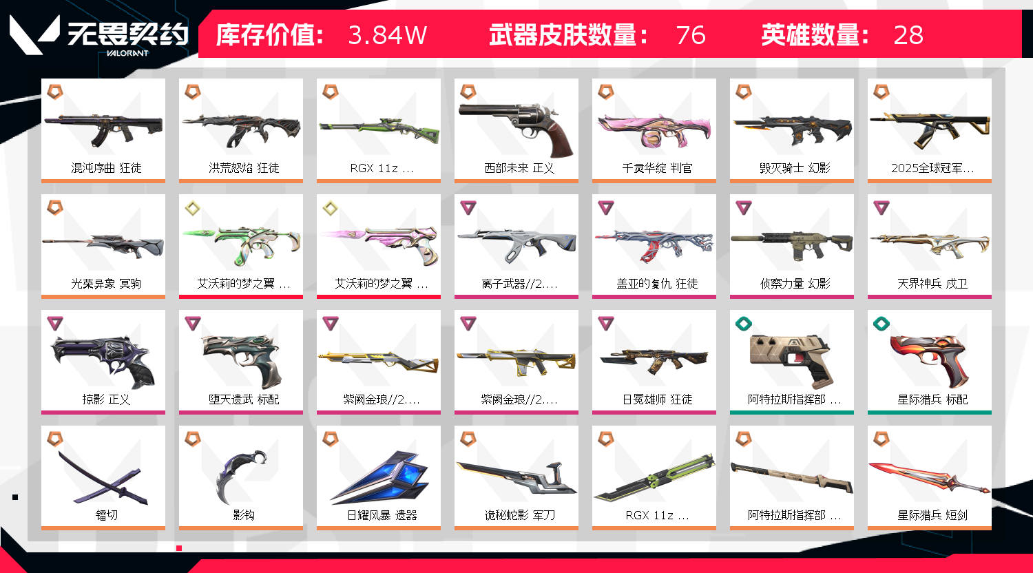 • 皮肤资产价值: 38350