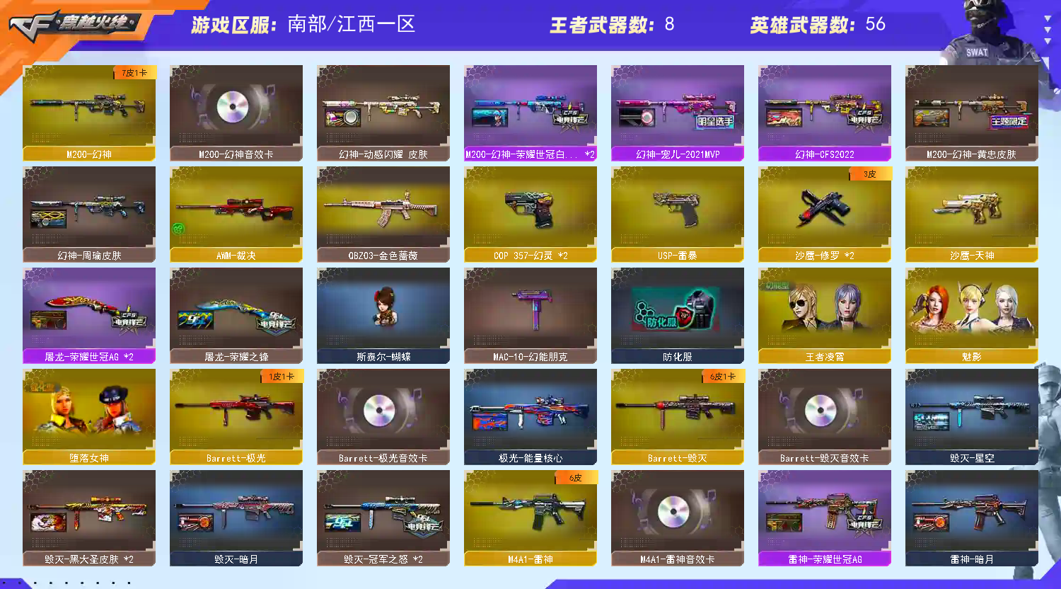 幻神七皮音效 王者白虎qbz金色蔷薇 幻灵套usp雷暴裁决雷神念旧雷神虎将雷神冠军毁灭冠军