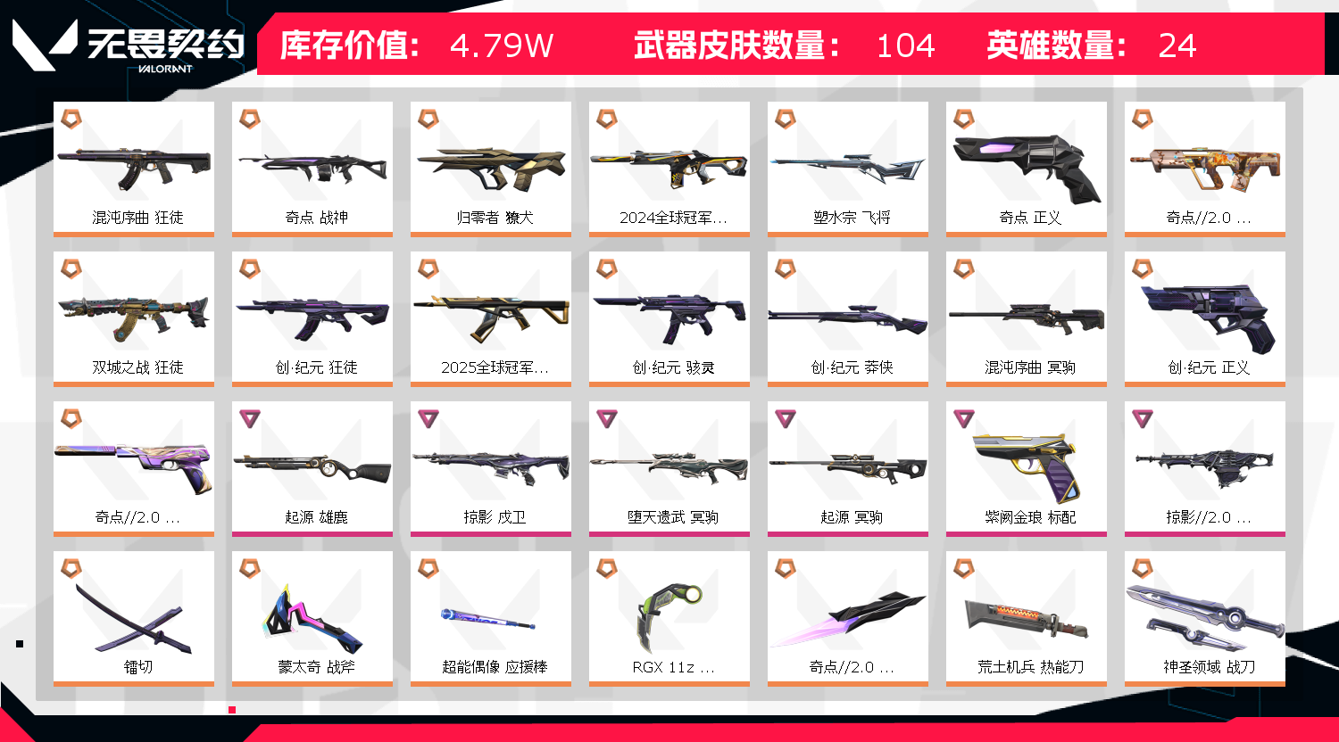 喜欢的点收藏;奇点 战神,镭切,起源 雄鹿,归零者 獠犬,掠影 戍卫,混沌序曲 狂徒,2024全球冠军赛 幻影,