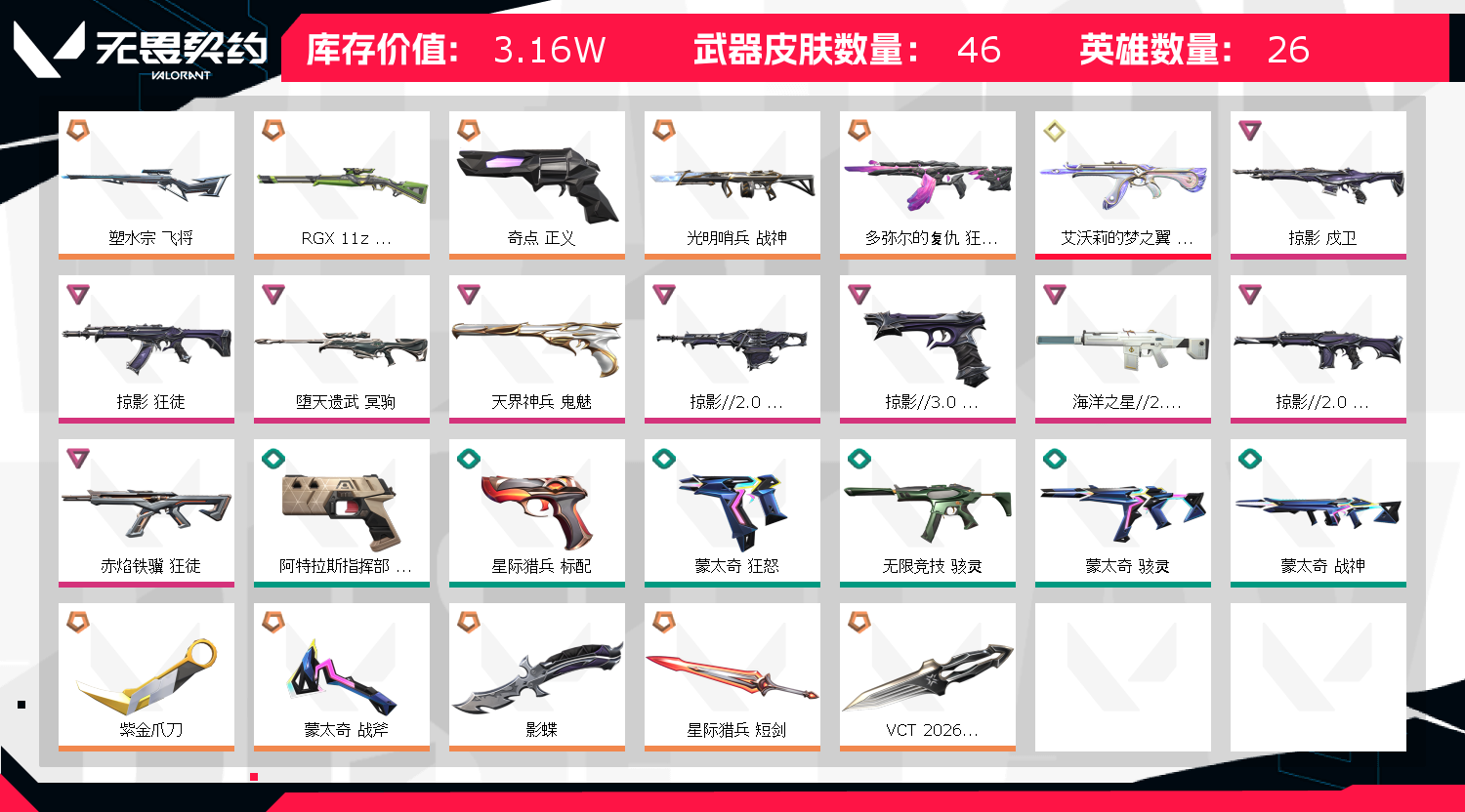 • 皮肤资产价值: 31590
