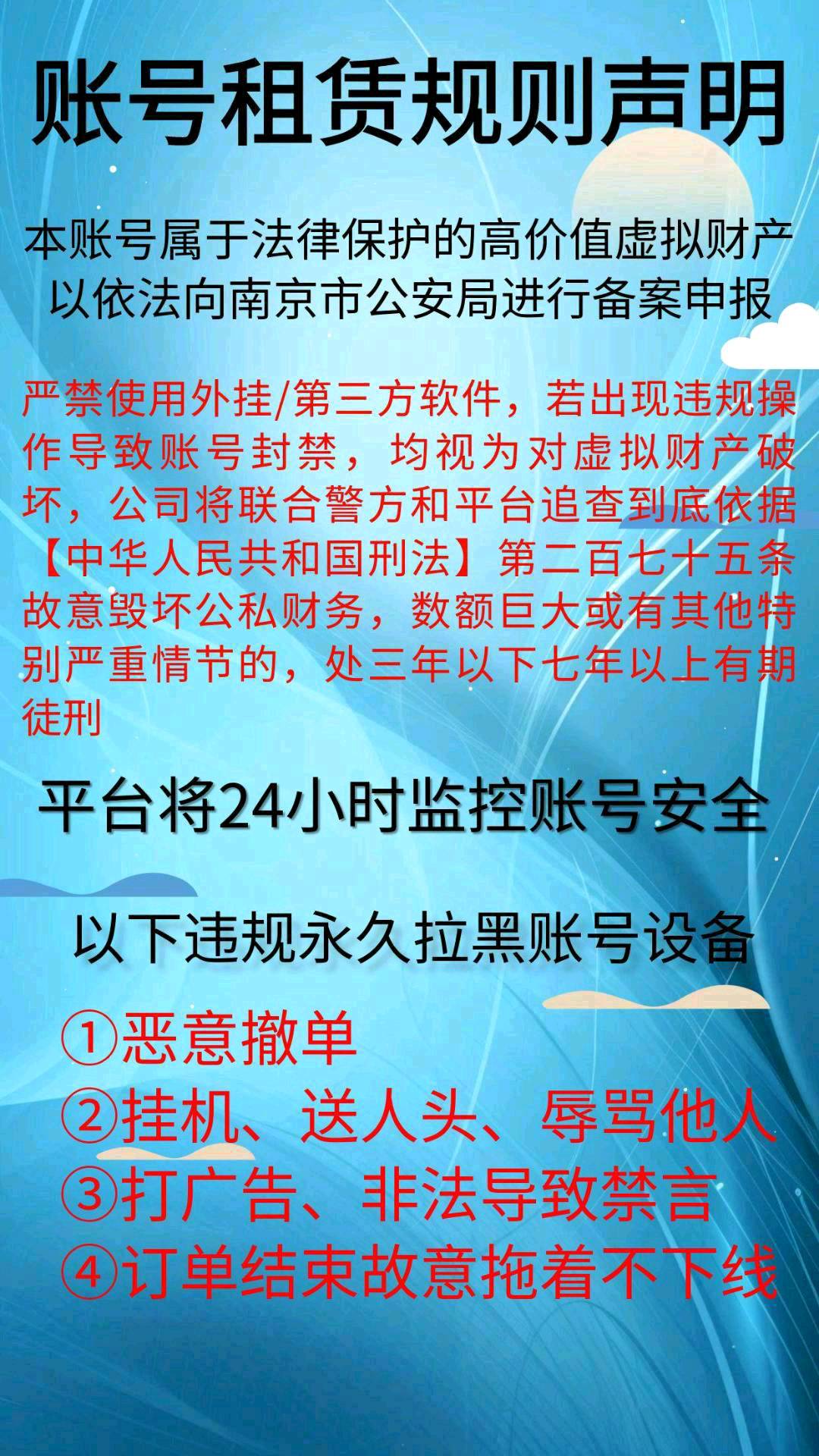 • 租号限制:起租时间4小时,租号0次及以上才可租用此号