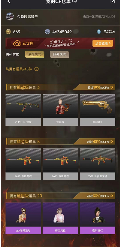 • 游戏区服:穿越火线 / 网通区 / 山西一区