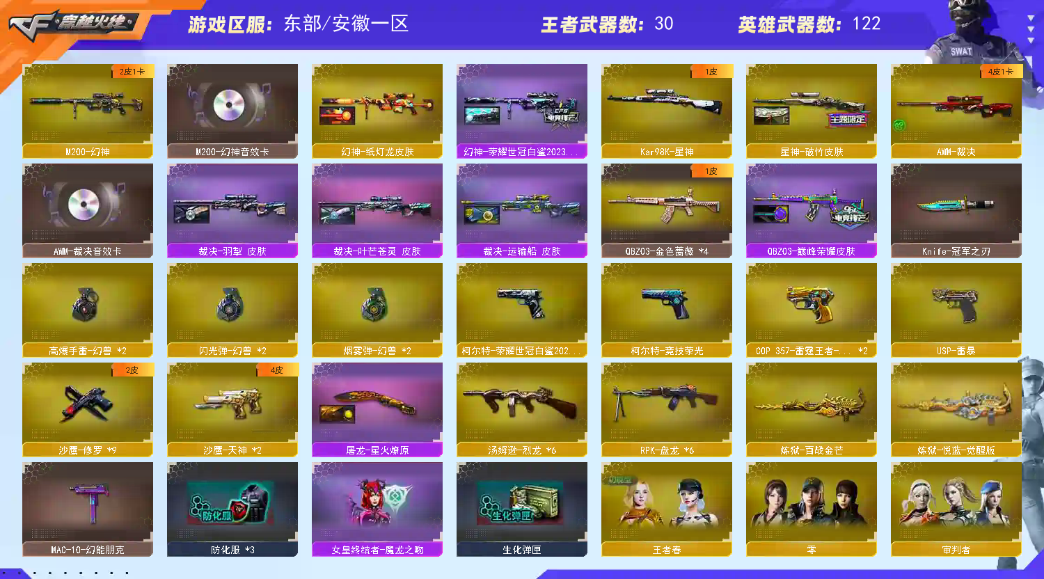 时间快到了别开排位谢谢您 提醒一下:禁止开挂,租号是实名,登号器实时监控已开,本号充值金额账号流水已打、开挂必追究、必追究,必追究已经备案,本店已经和专业律师团队合作,请各位自觉!!! 最后祝大家玩的开心!!!;USP-雷暴,柯尔特-荣耀世冠白鲨2023,Knife-冠军之刃,RPK-盘龙,QBZ03-金色蔷薇,M200-幻神,Kar98K-星神,