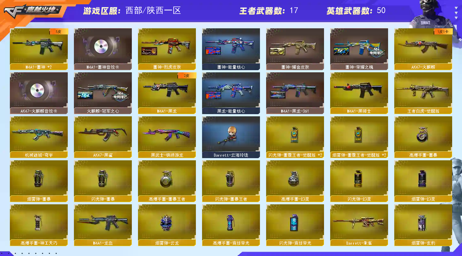 • 游戏区服:穿越火线 / 电信区 / 陕西一区