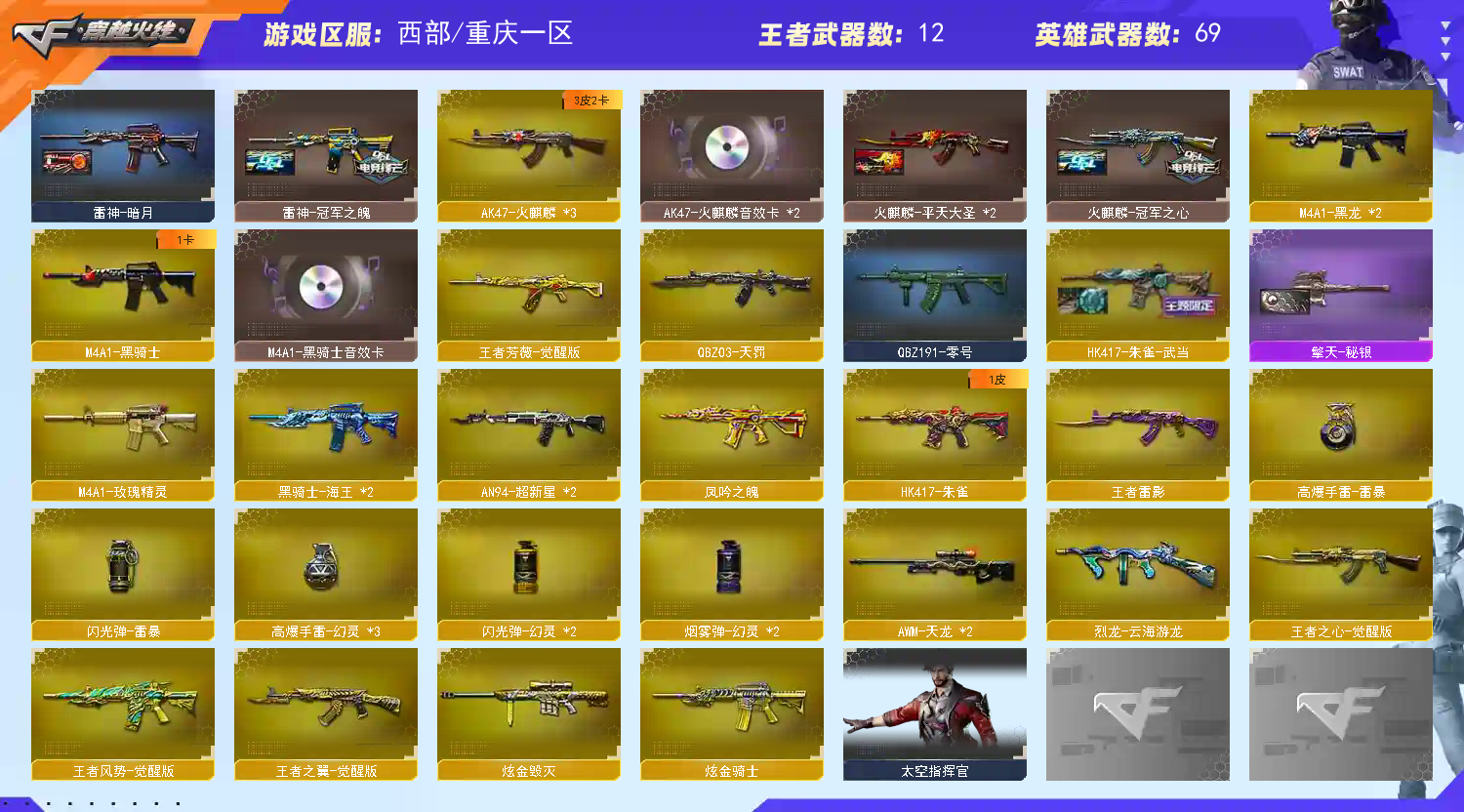 • 游戏区服:穿越火线 / 电信区 / 重庆一区