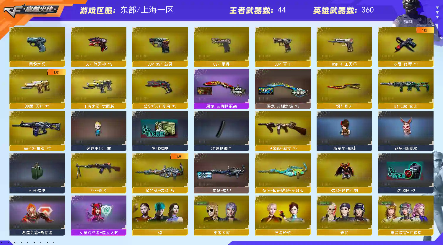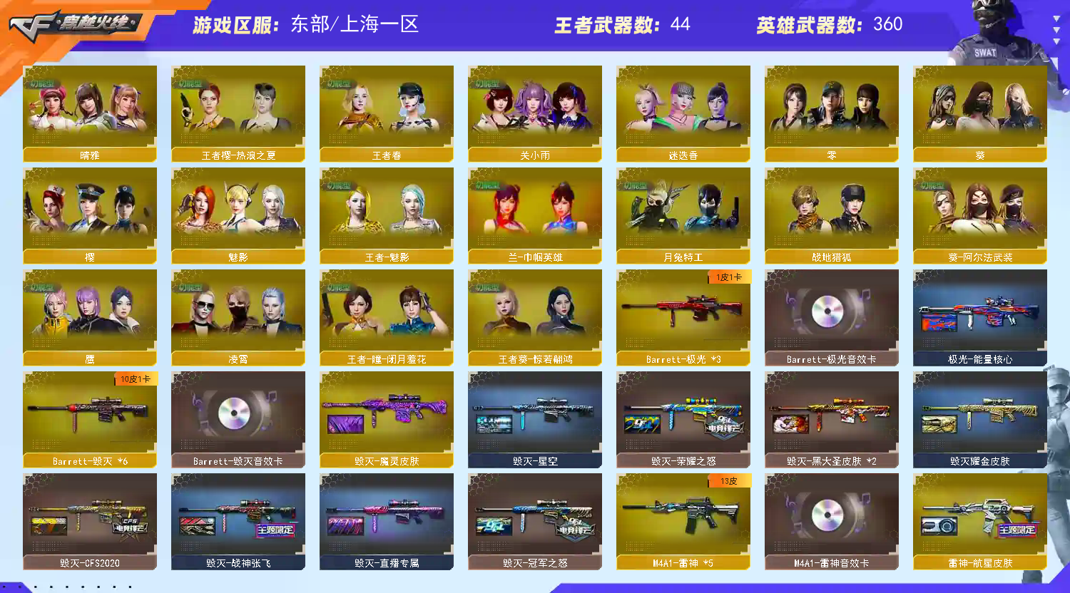 首页 > 租号大厅 > 穿越火线 > 电信区/上海一区 > 360V/7皮幻神音效裁决毁灭三件套/6烈6炼狱斯太尔蝴蝶小钢6黑幻灵玄武朱雀堕天神白虎之魄